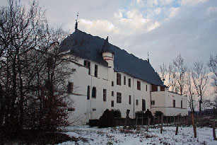 - L'aile occidentale où se détache l'ordonnance classique de la galerie à deux étages abritait les appartements de réception.