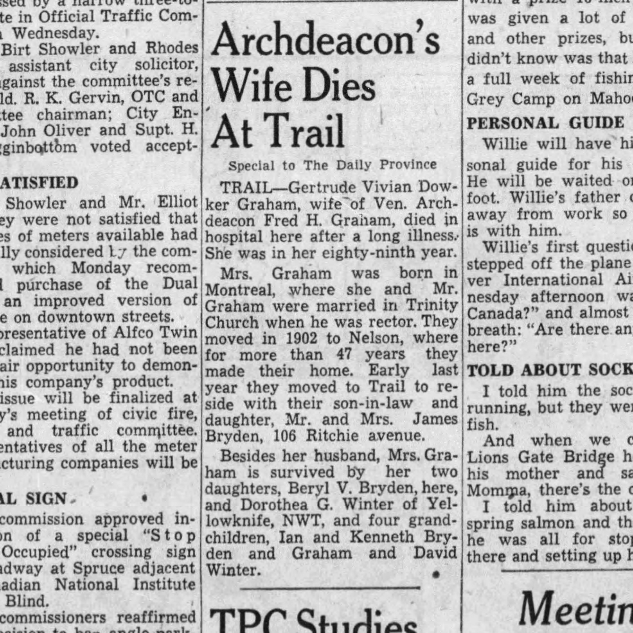 Gertrude Dowker, source: the Provice, Aug. 3, 1950
