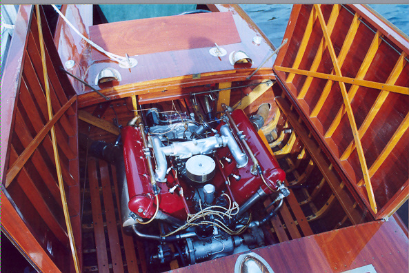 The engine of Baby Bootlegger. This is a 220-horsepower converted Hispano Suiza aircraft engine dating from the First World War. Photo by Mark P. Mason