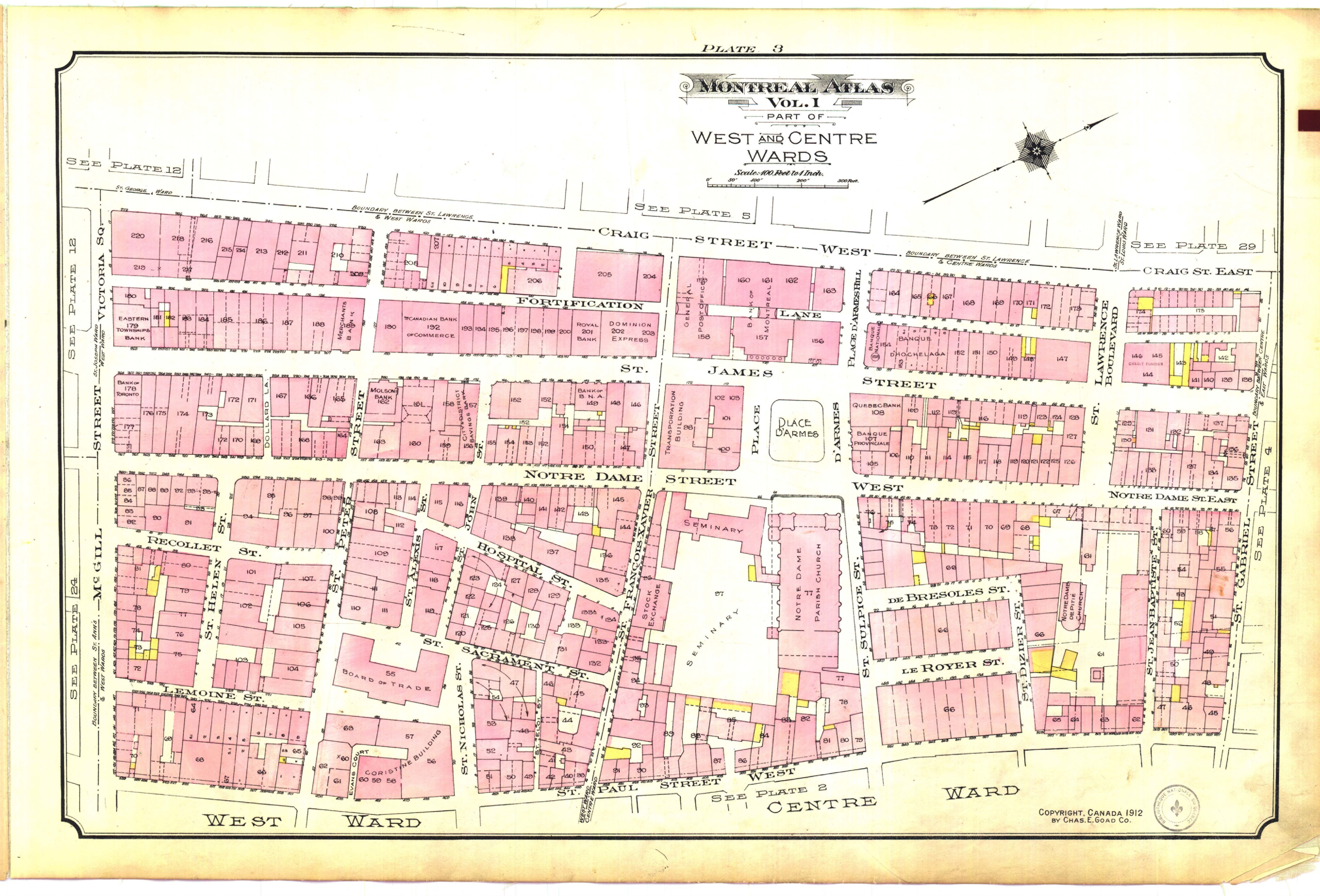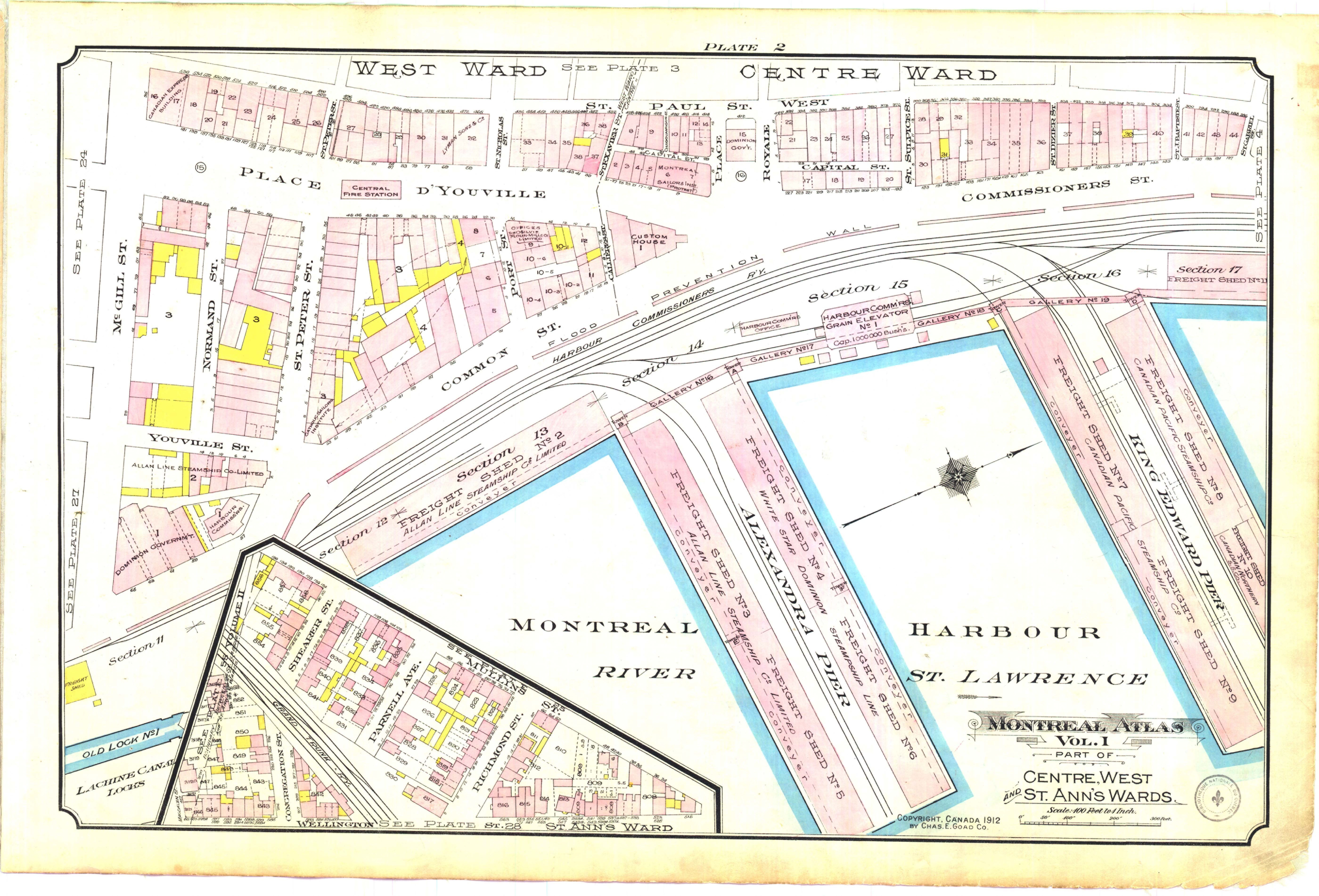 Atlas of Montreal, 1912, 31 St-Peter Street marked with orange dot, source: https://collections.banq.qc.ca /ark:/52327/2244204