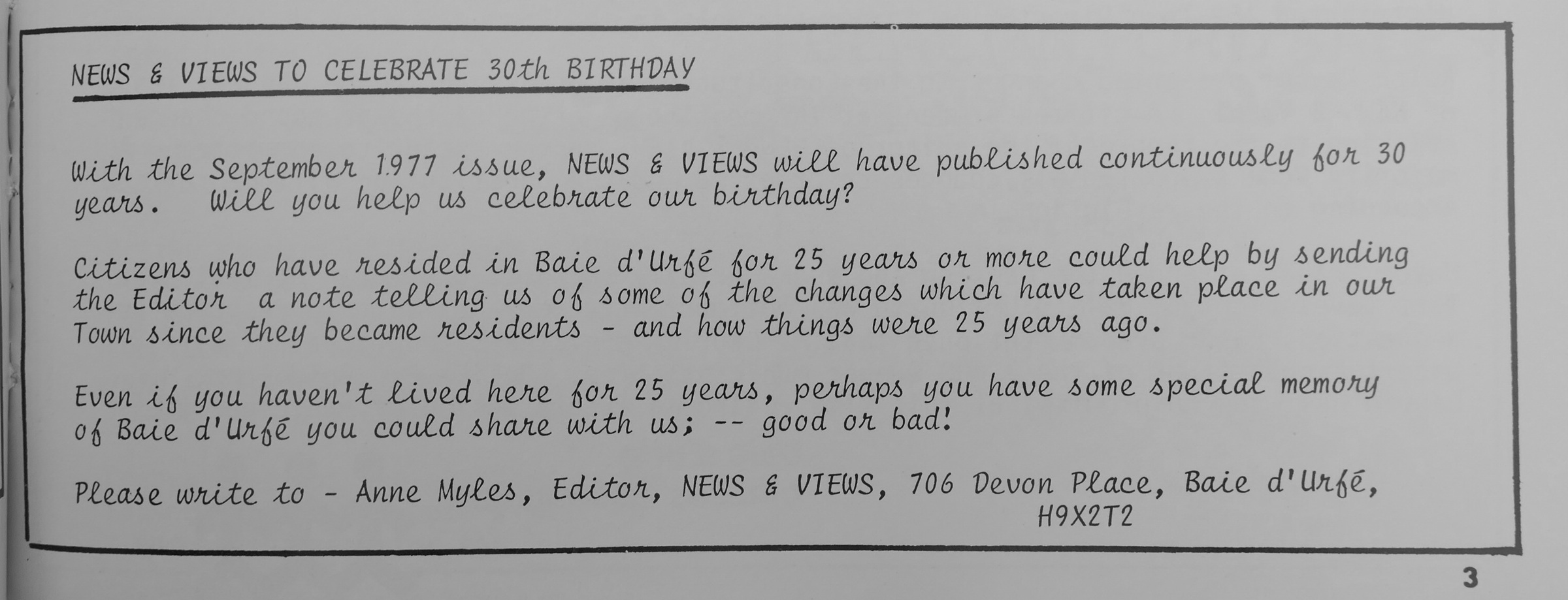 The News & Views magazine celebrated in 1977 its 30th anniversary with a series of articles called "Baie-D'Urfé memories".