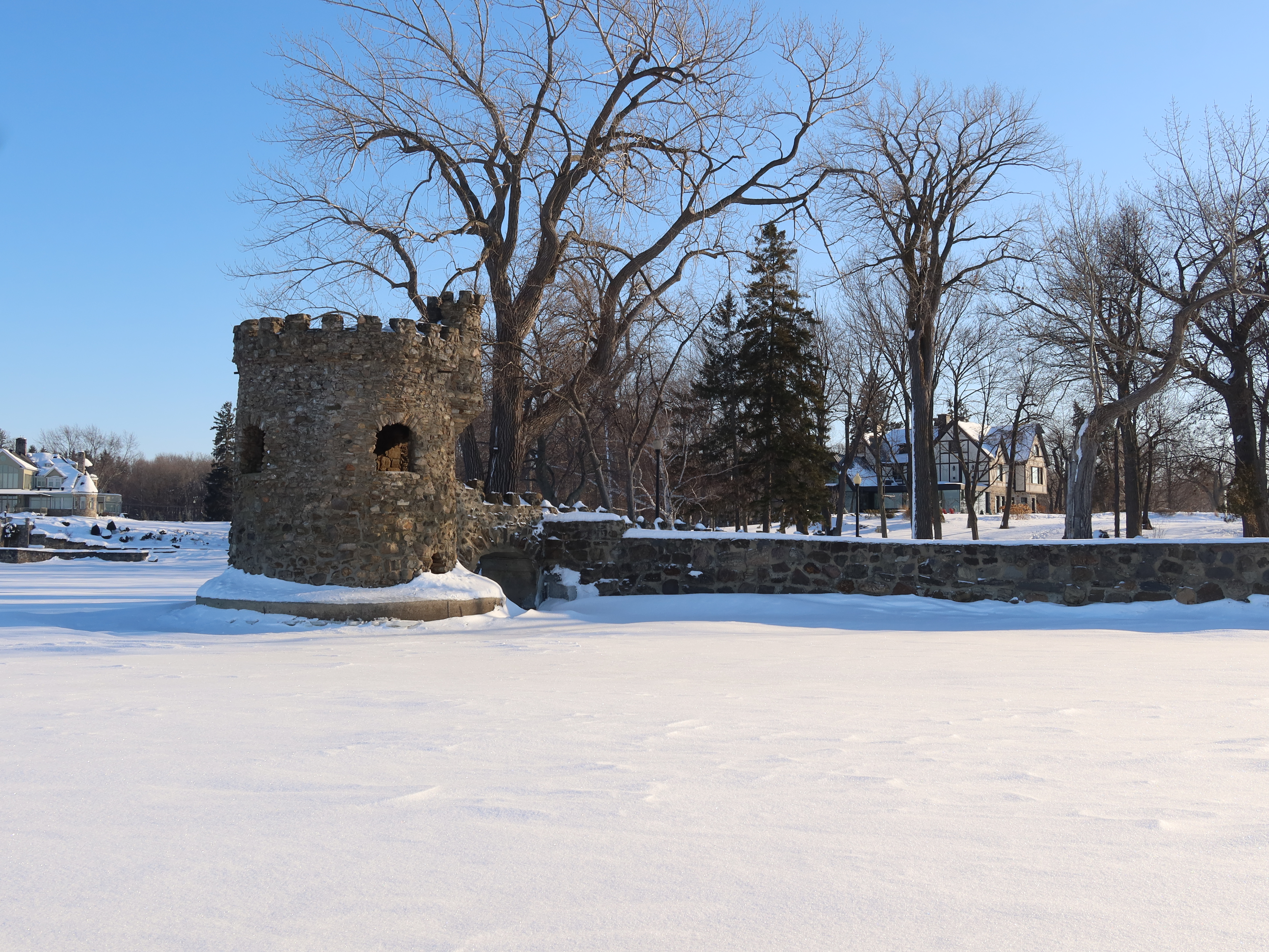 Little waterfront tower behind Graystanes. This tower is a well known landmark and frequently mistaken for Fort Senneville. Today it does not belong to Graystanes but it was built by James Morgan as a playhouse for his children, photo: Feb. 2020