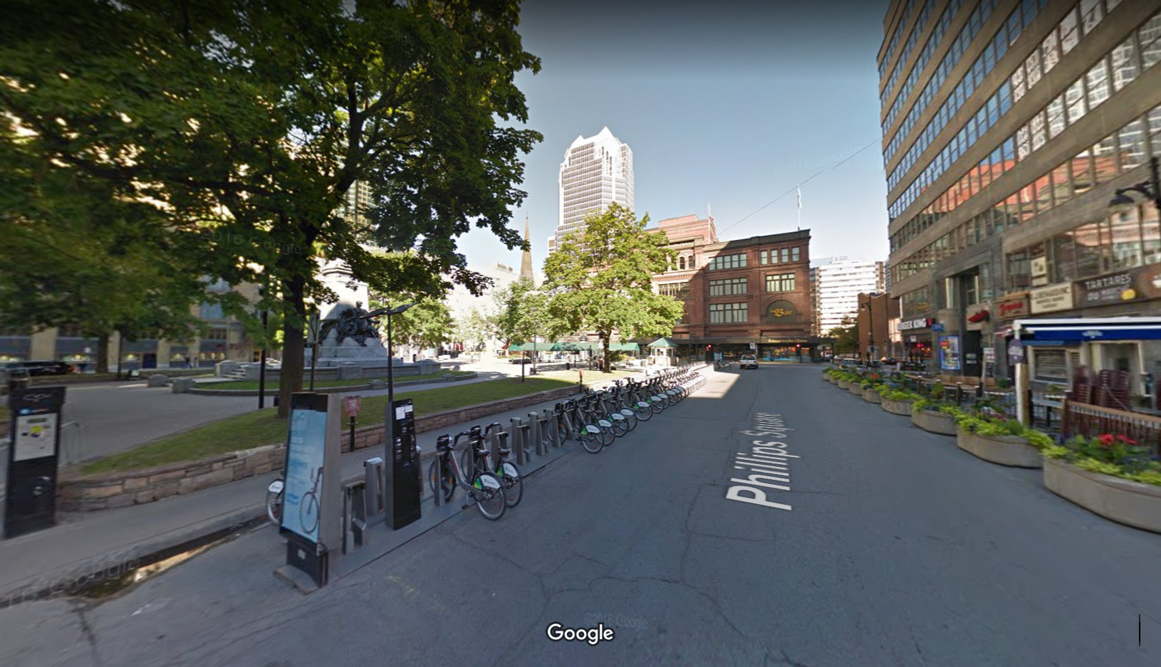 La Baie/The Bay, 585 St Catherine St West, Montreal H3B3Y5, source: google street-view July 2016. View from Phillips Square.