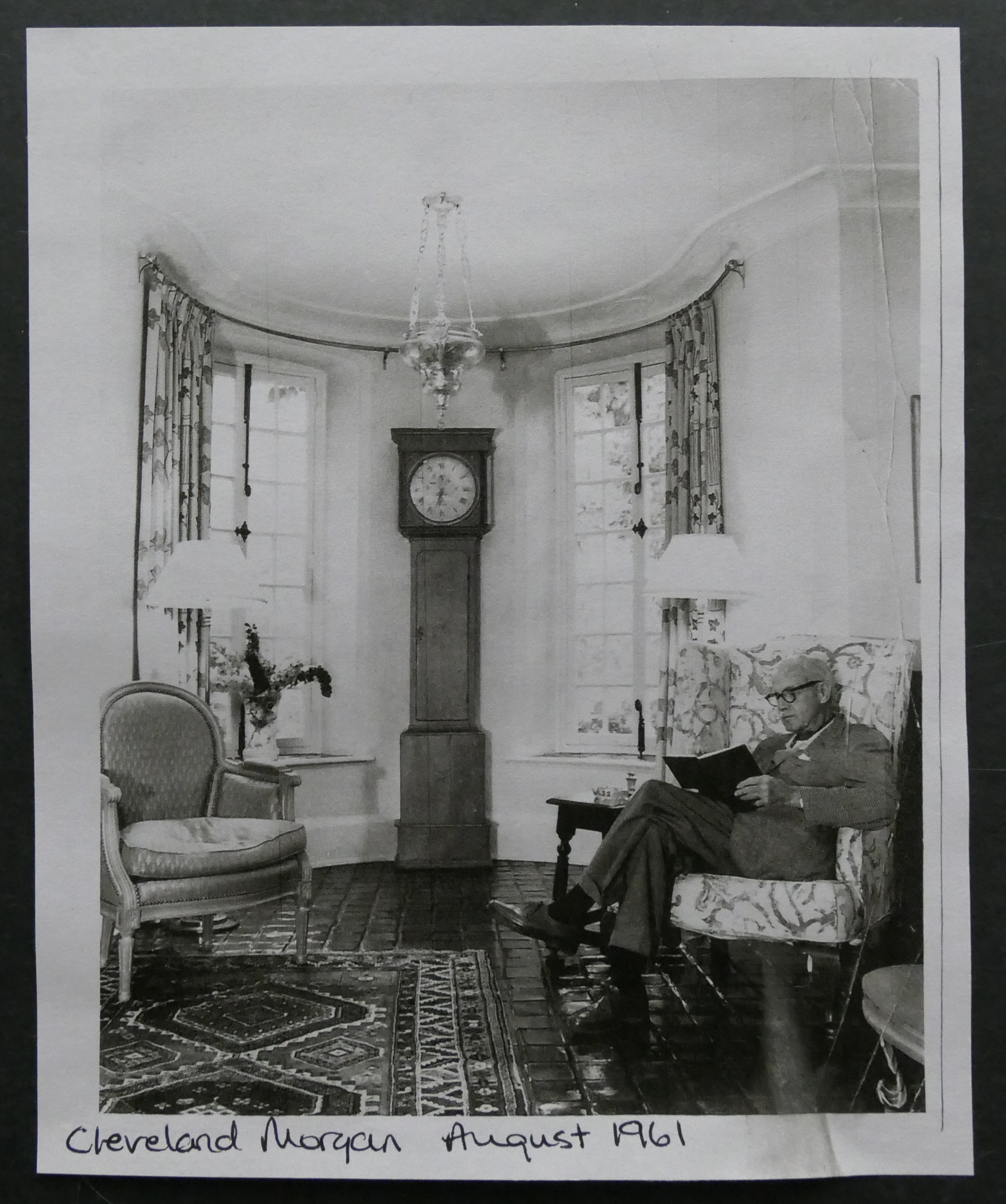 Cleveland Morgan reading a book at "le sabot" in the west-tower, ground floor, Aug. 1961, source: 2020 exhibition by Liz Morgan
