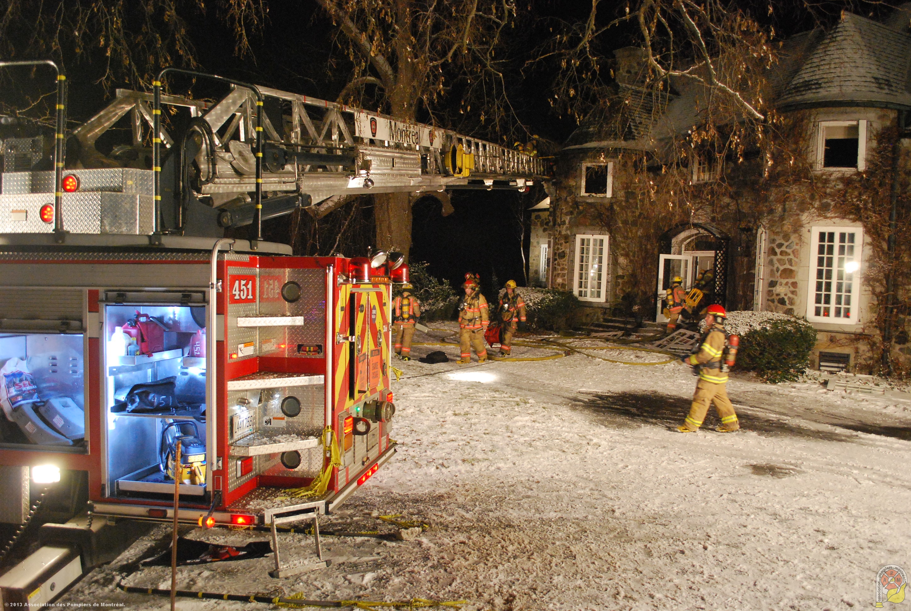 Fire at Le Sabot, Sat, Dec. 6 2014, photo: Association des pompiers de Montreal