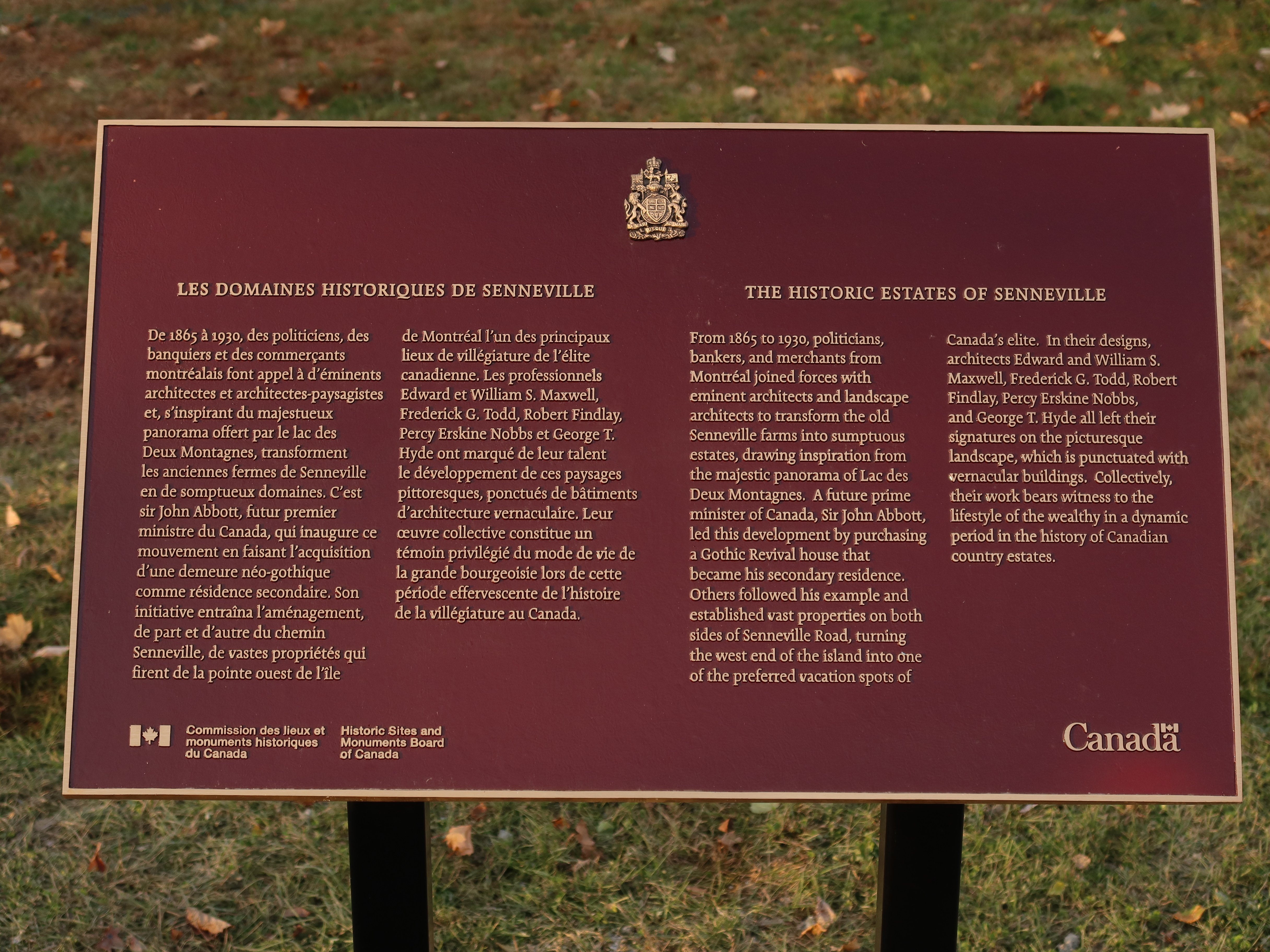 Senneville national historic site, plaques, photo: Oct. 2020