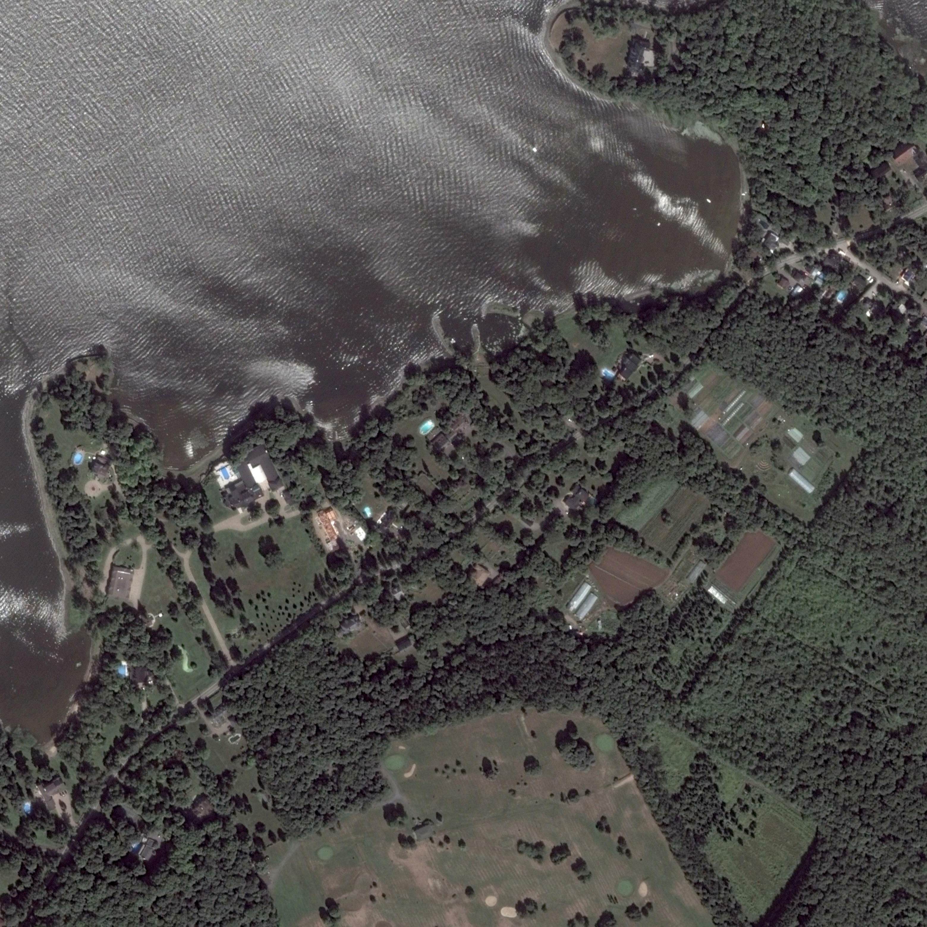 On the grounds of Le Sabot near the water is a small summer cottage and next to it is a small island, photo: July 2021