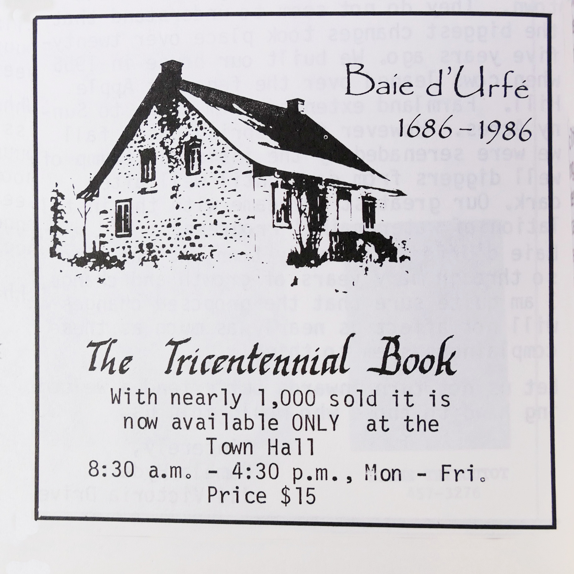 Book: Baie d'Urfé 1686 - 1986 (aka tricentennial book)