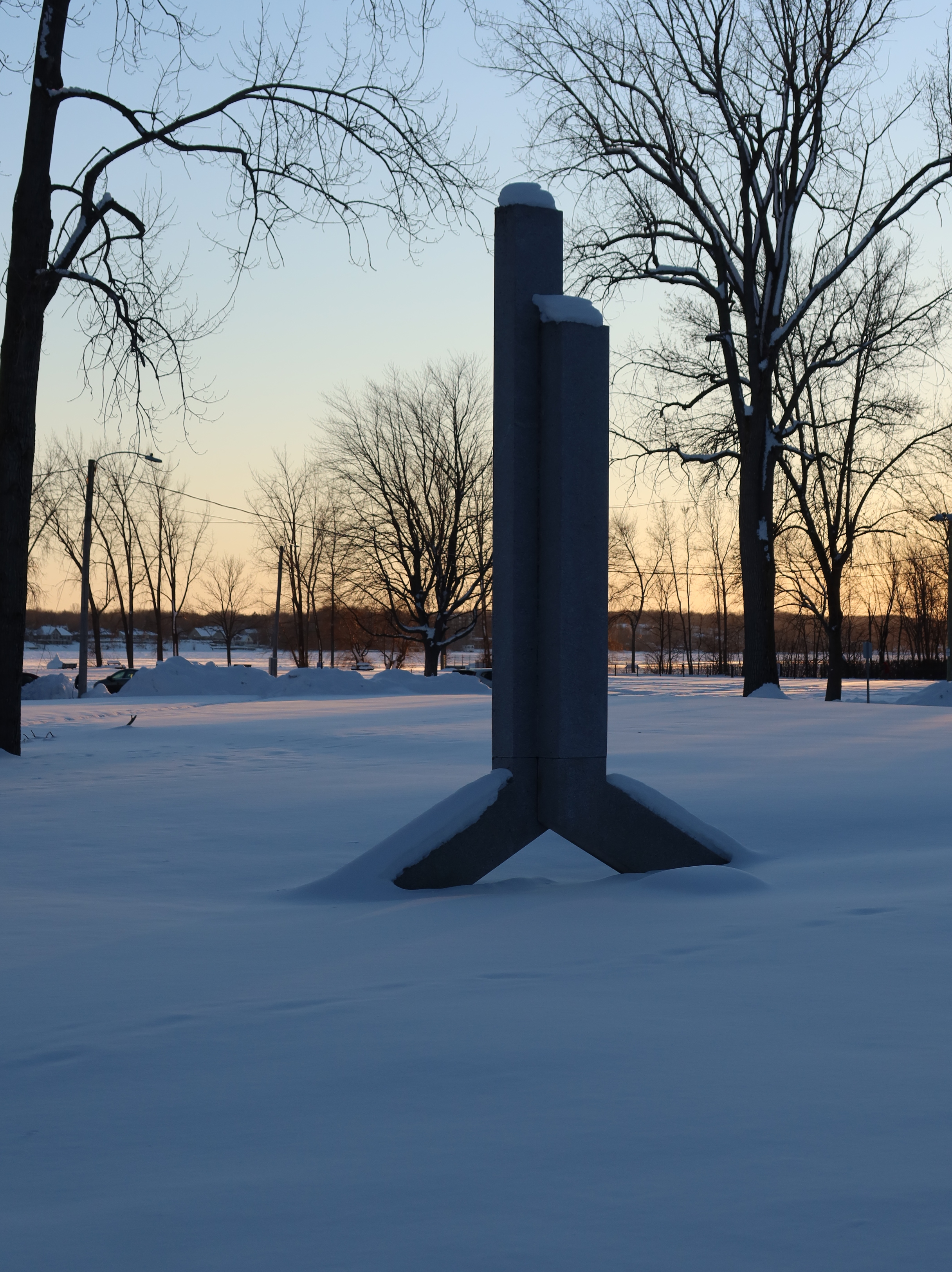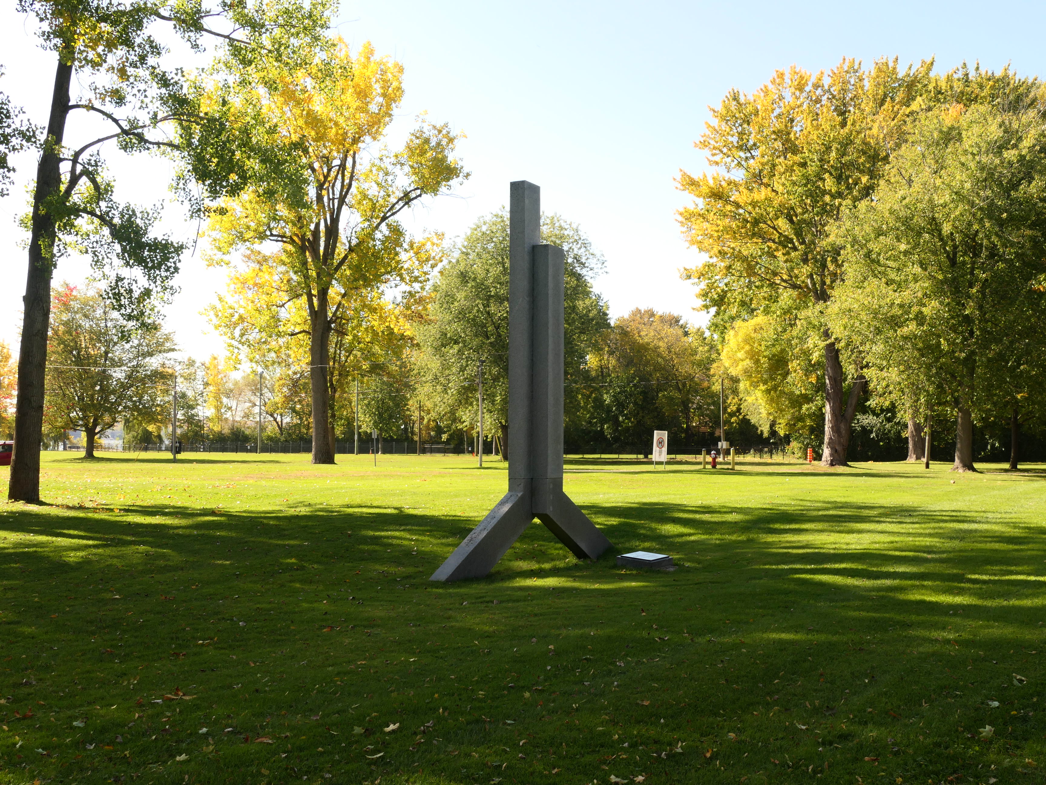 Jean de Lalonde monument, photo Oct. 2019, it has the form a "J" and an "L" back to back