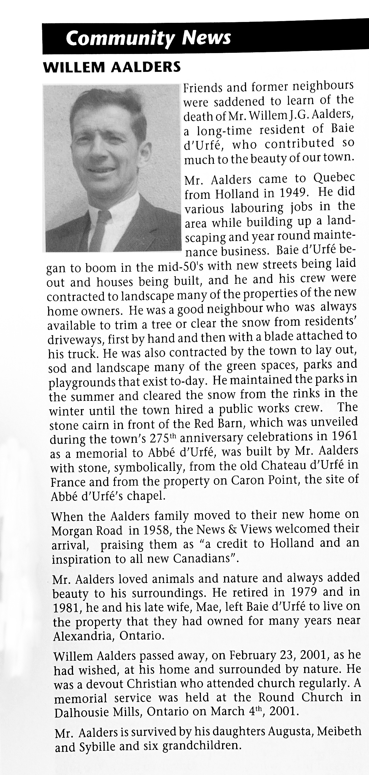 Willem Aalders (21-Jan-1918 to 23-Feb-2001), this is the person identified as "contractor" in the Gazette article from June 13, he lived at #66 Morgan, source: N&V April 2001, click photo to read