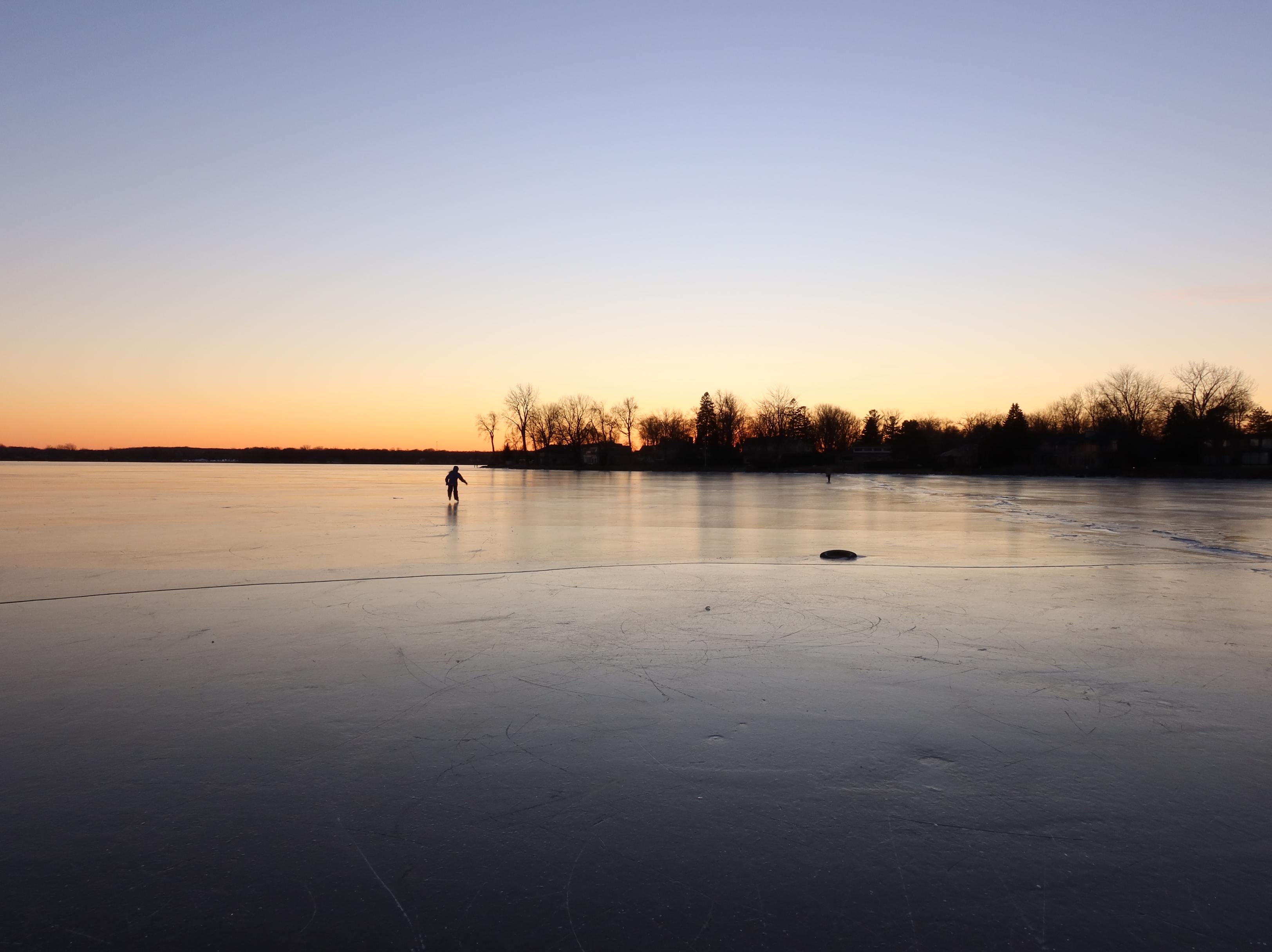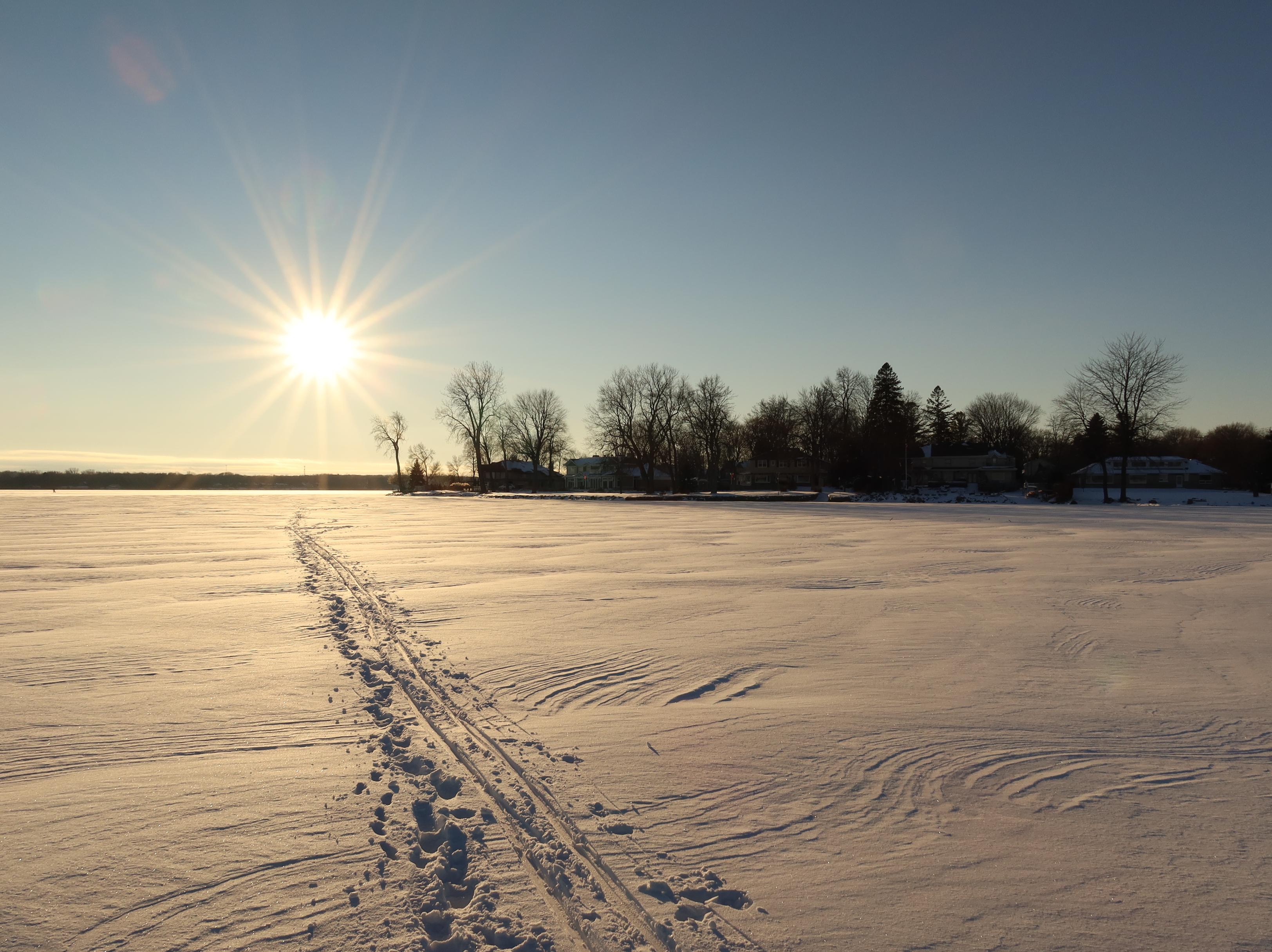 View from the bay towards Pointe Caron, winter sunset, Dec. 29, 2020, perfect ice for skating