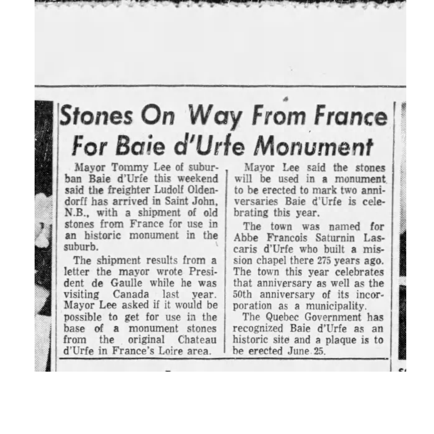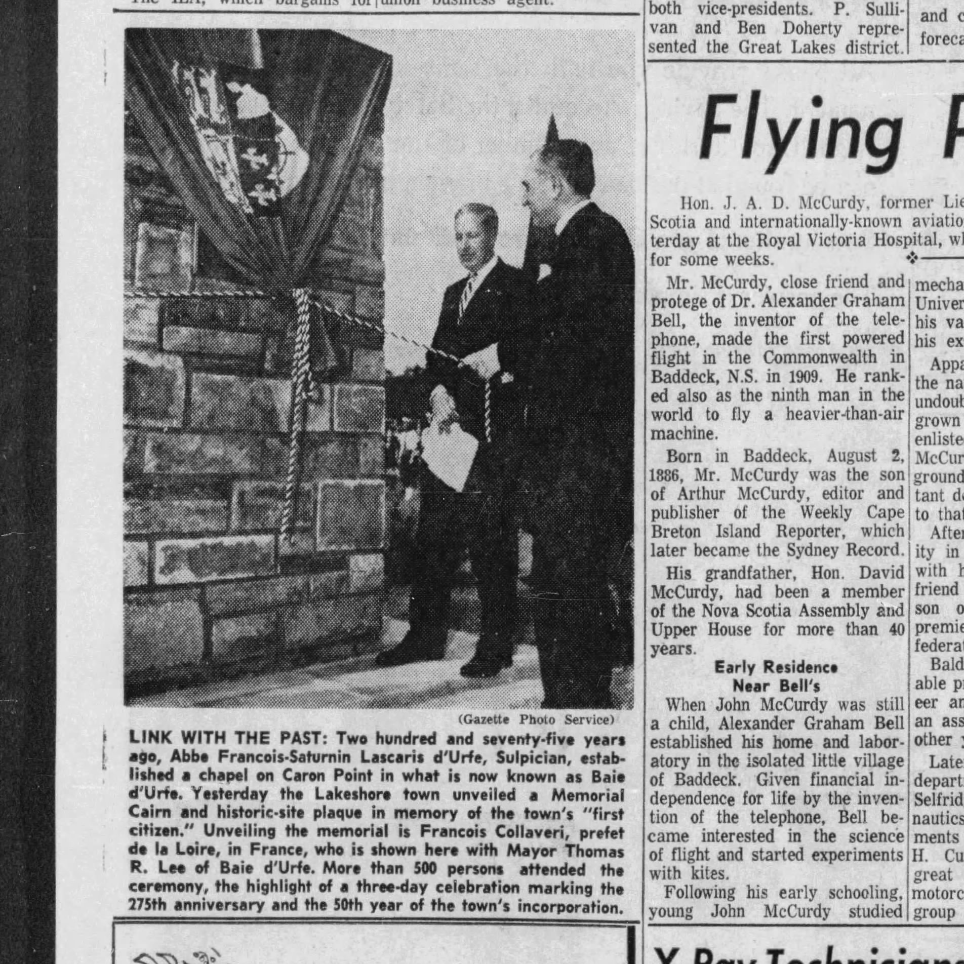 Unveiling of the Cairn, The Gazette, June 26, 1961