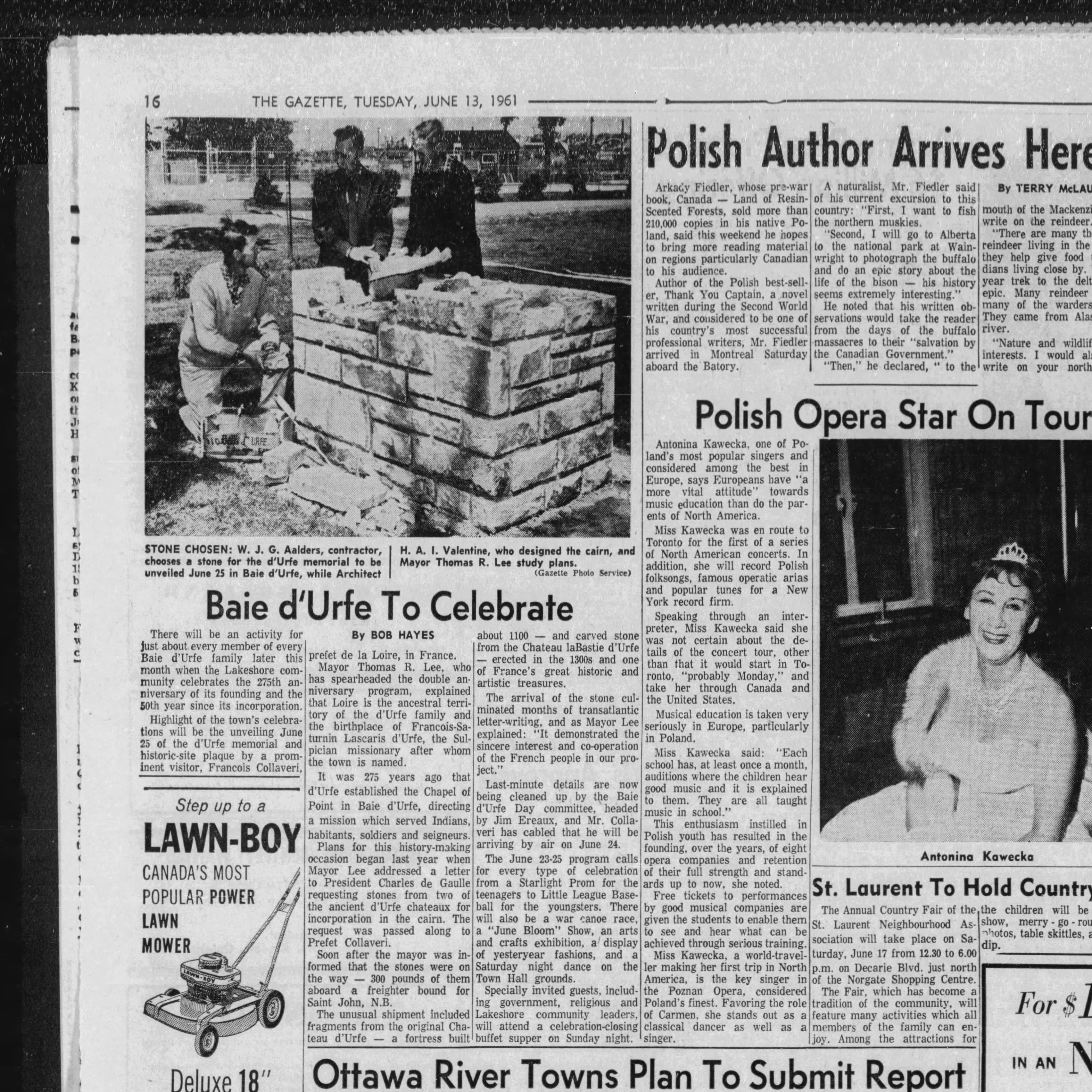 Building the Cairn, The Gazette, June 13, 1961