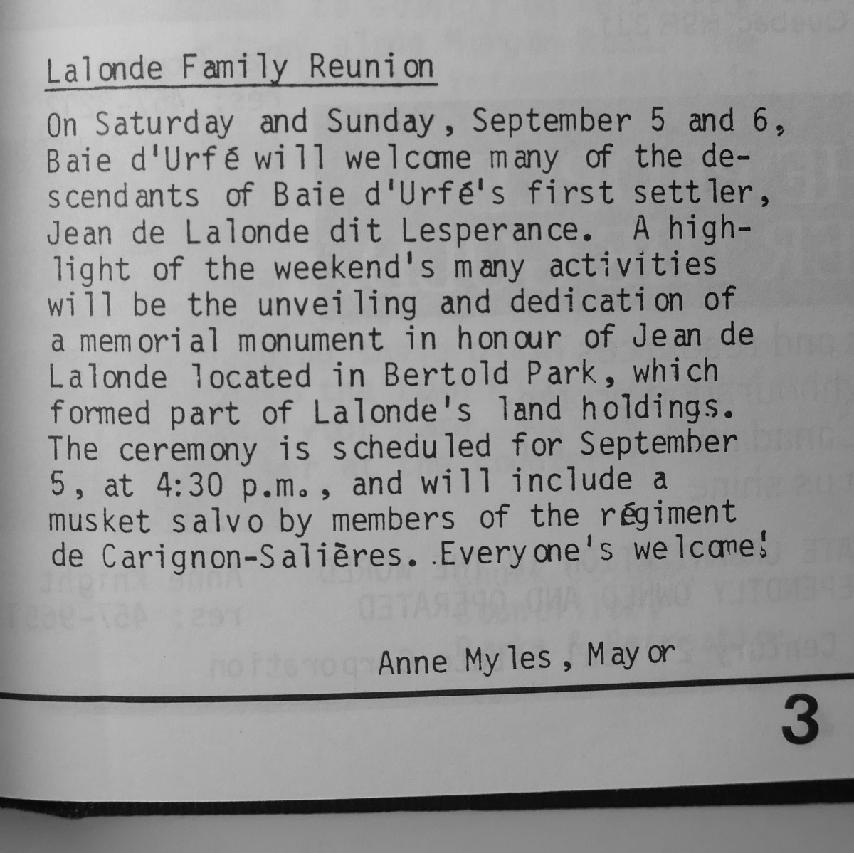 LaLonde family reunion, source: N&V Sep. 1987