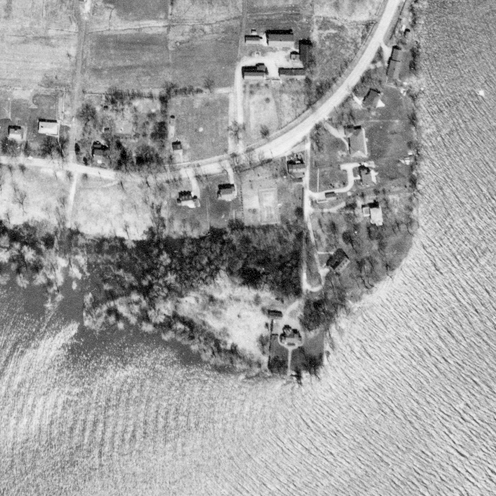 Aerial image of Pointe Caron from April 1955, "dent" marked with arrow, photo: The National Air Photo Library - Natural Resources Canada