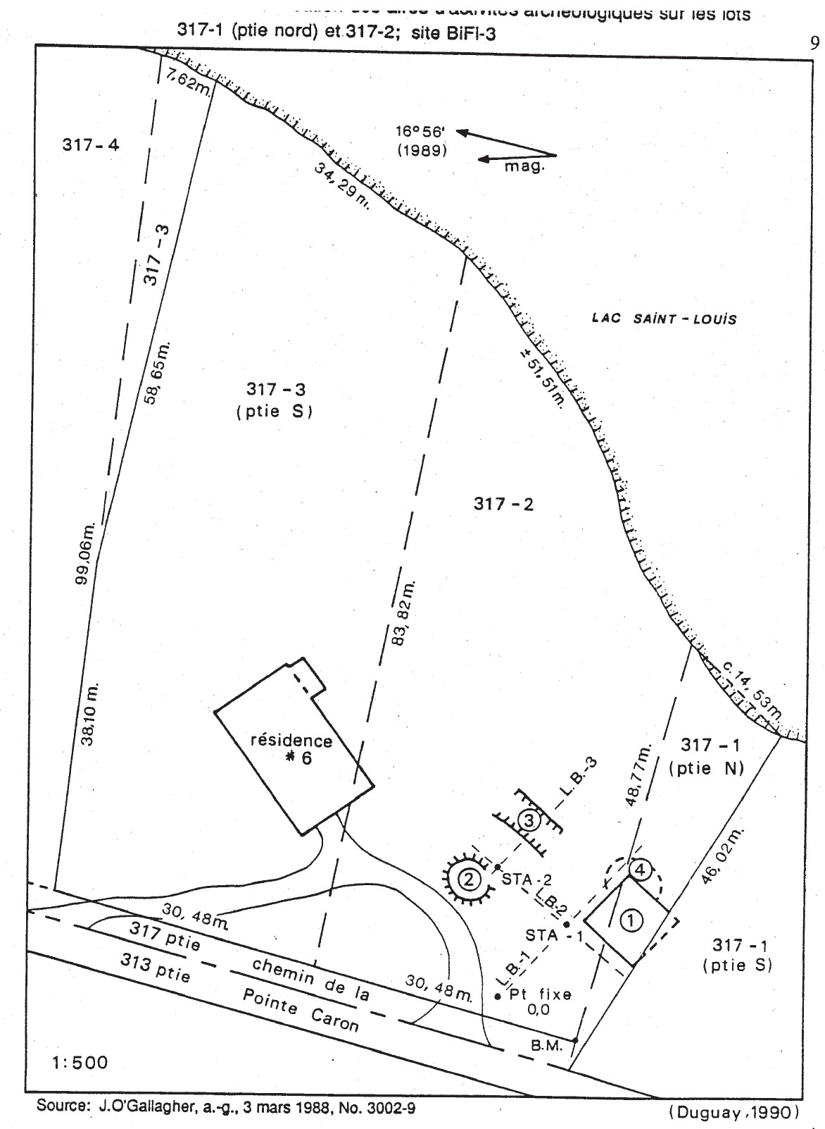 The obvious question still remains: Where exactly on Pointe Caron was the church/chapel and where was that cemetery? No maps or drawings were produced during the excavations in 1859/1866. A description of the excavations mentions that the bodies were found between two parallel walls, 26 feet (=8m) apart, going from north to south in the western part of Point-Caron. No walls perpendicular to those parallel walls were found.