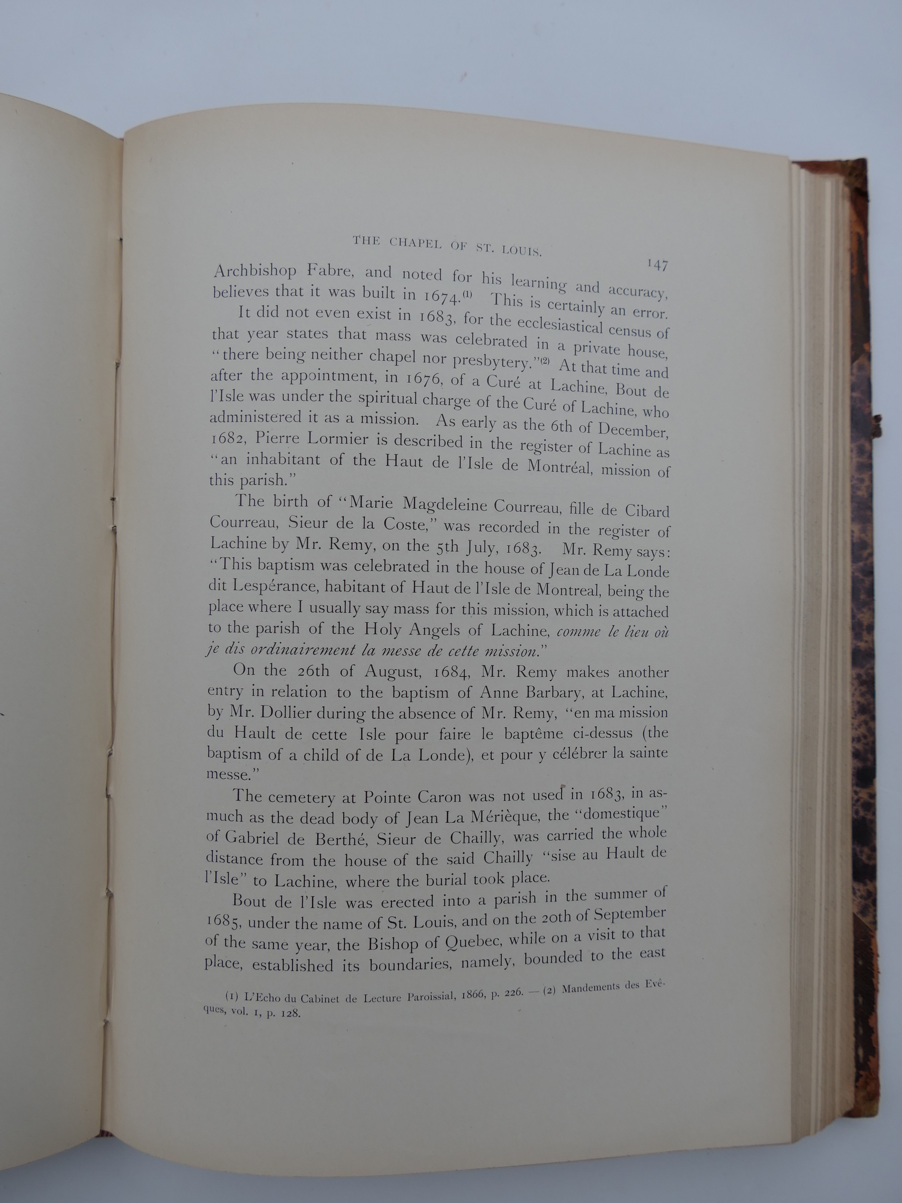 It did not even exist in 1683, for the ecclesiastical census of that year states that mass was celebrated in a private house. "there being neither chapel nor presbytery."(2) At that time and after the appointment, in 1676, of a Curé at Lachine, Bout de l'Isle was under the spiritual charge of the Curé of Lachine, who administered it as a mission. As early as the 6th of December, 1682. Pierre Lormier is described in the register of Lachine as "an inhabitant of the Haut de l'Isle de Montréal, mission of this parish."
