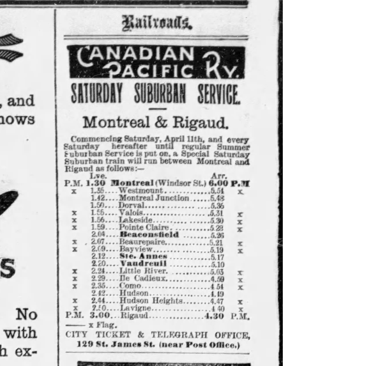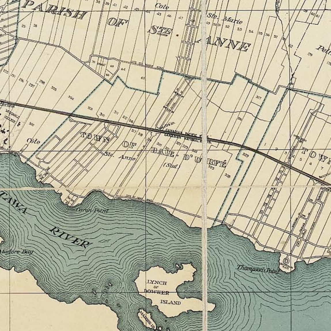 The main road was Lakeshore and it ended in St-Anne with no bridge. This changed in 1852/1853 when the Grand Trunk Railway Company of Canada built railway tracks from Montreal to Toronto. All farms were suddenly cut in half. These tracks determined the path of future transportation routes and indeed the very layout of the town.