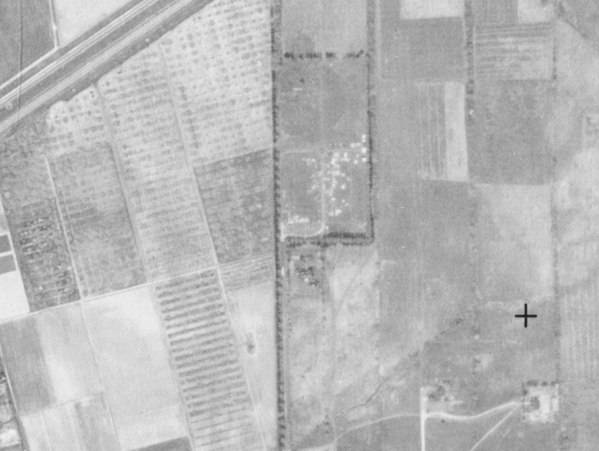 Maxwelton 1948-Aug-25, only a few apple trees near the main house remain, photo: The National Air Photo Library - Natural Resources Canada