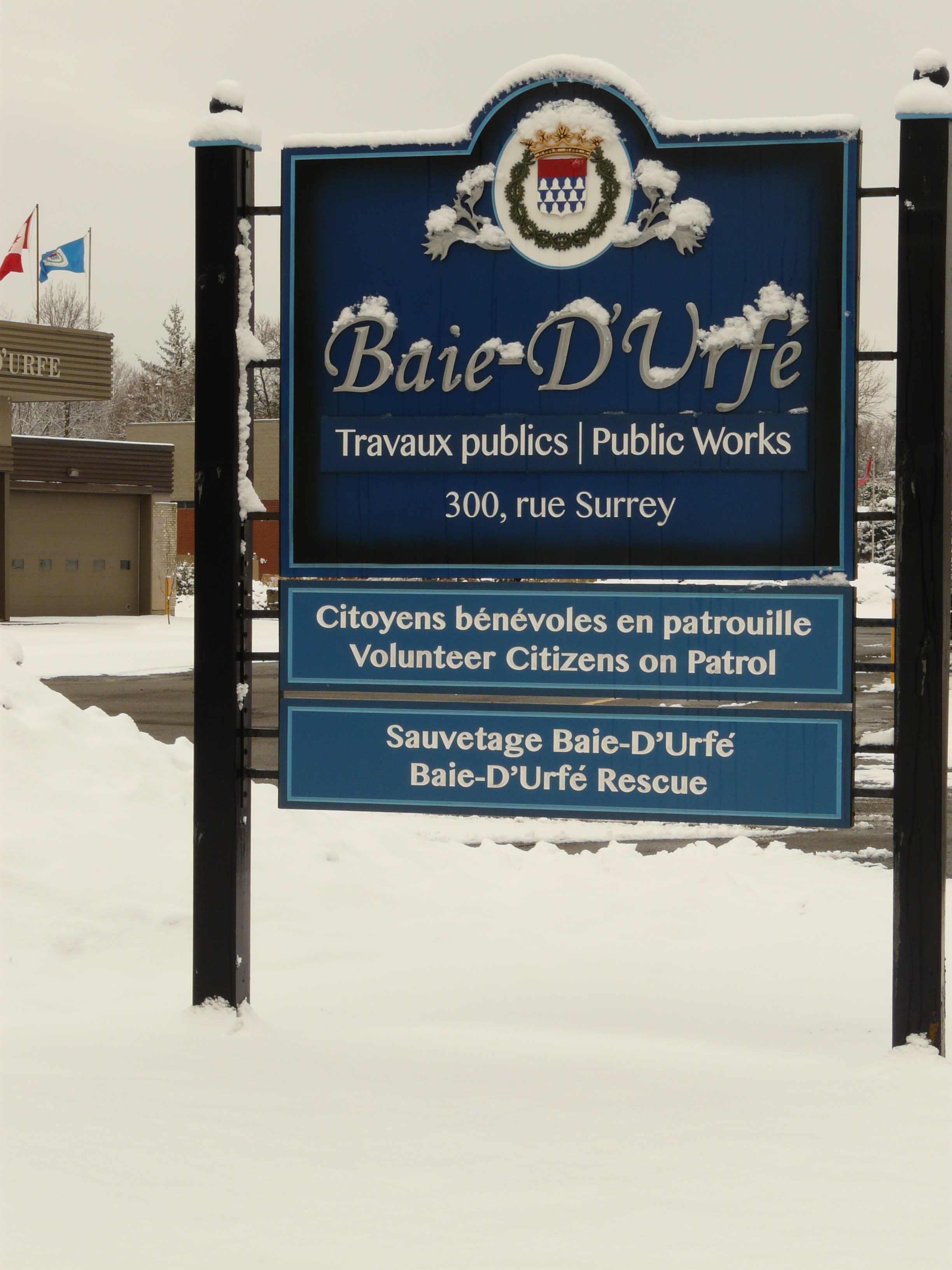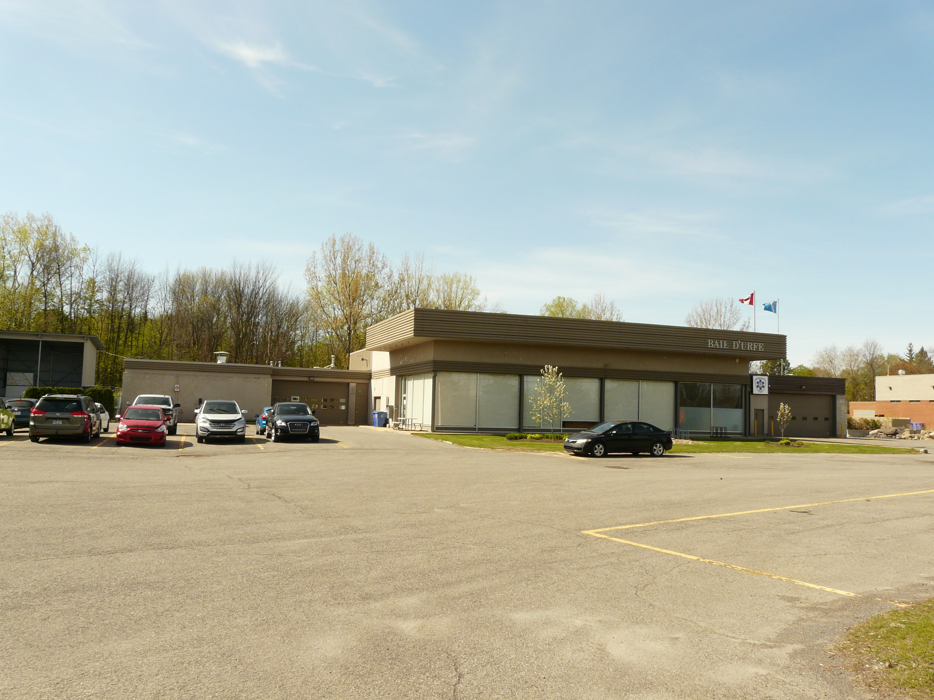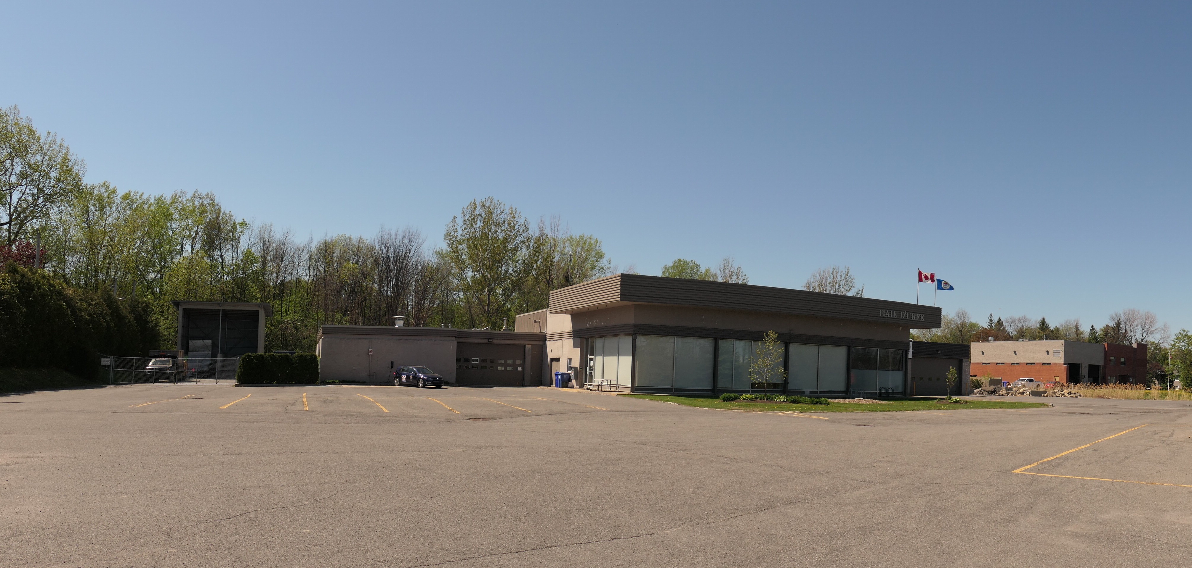 Baie-D'Urfé had at the time a volunteer fire department and parts of the new building were used for the fire department. The volunteer fire department became a casualty of the the Montreal merger years. As you can see in the below aerial images there wasn't a separate fire station building in 2005. The building of the Montreal fire department at 330 Surrey was built in 2006.