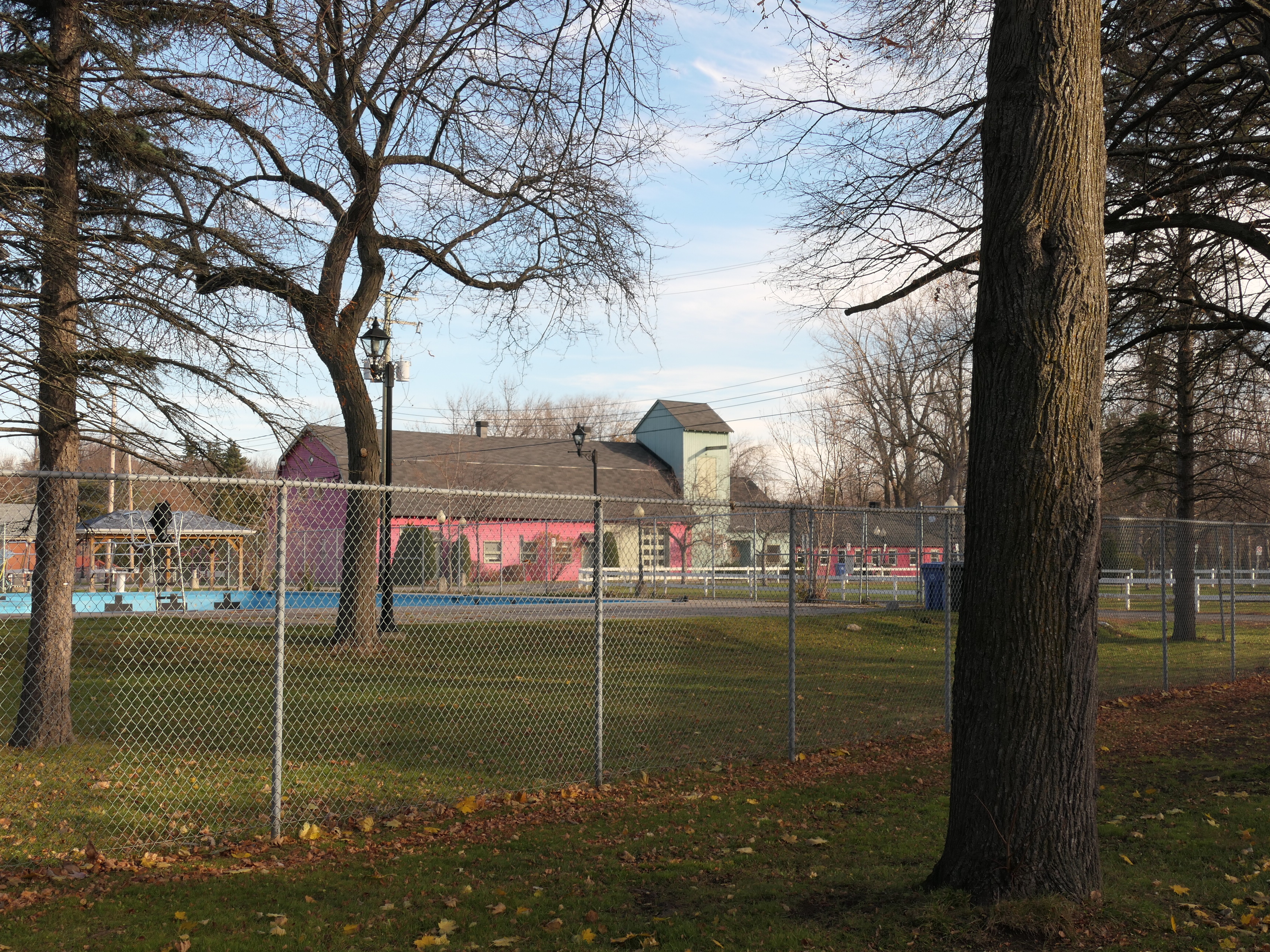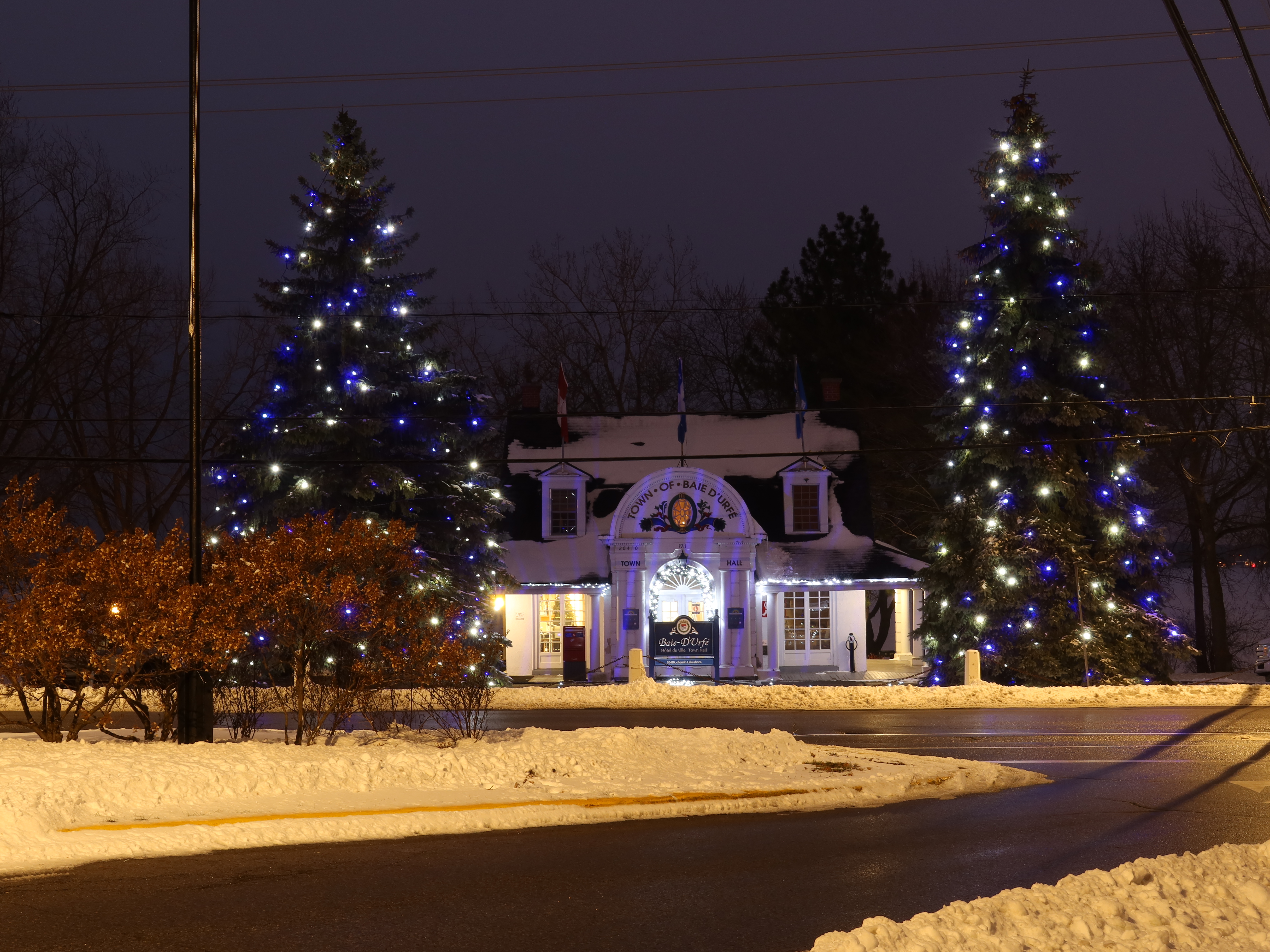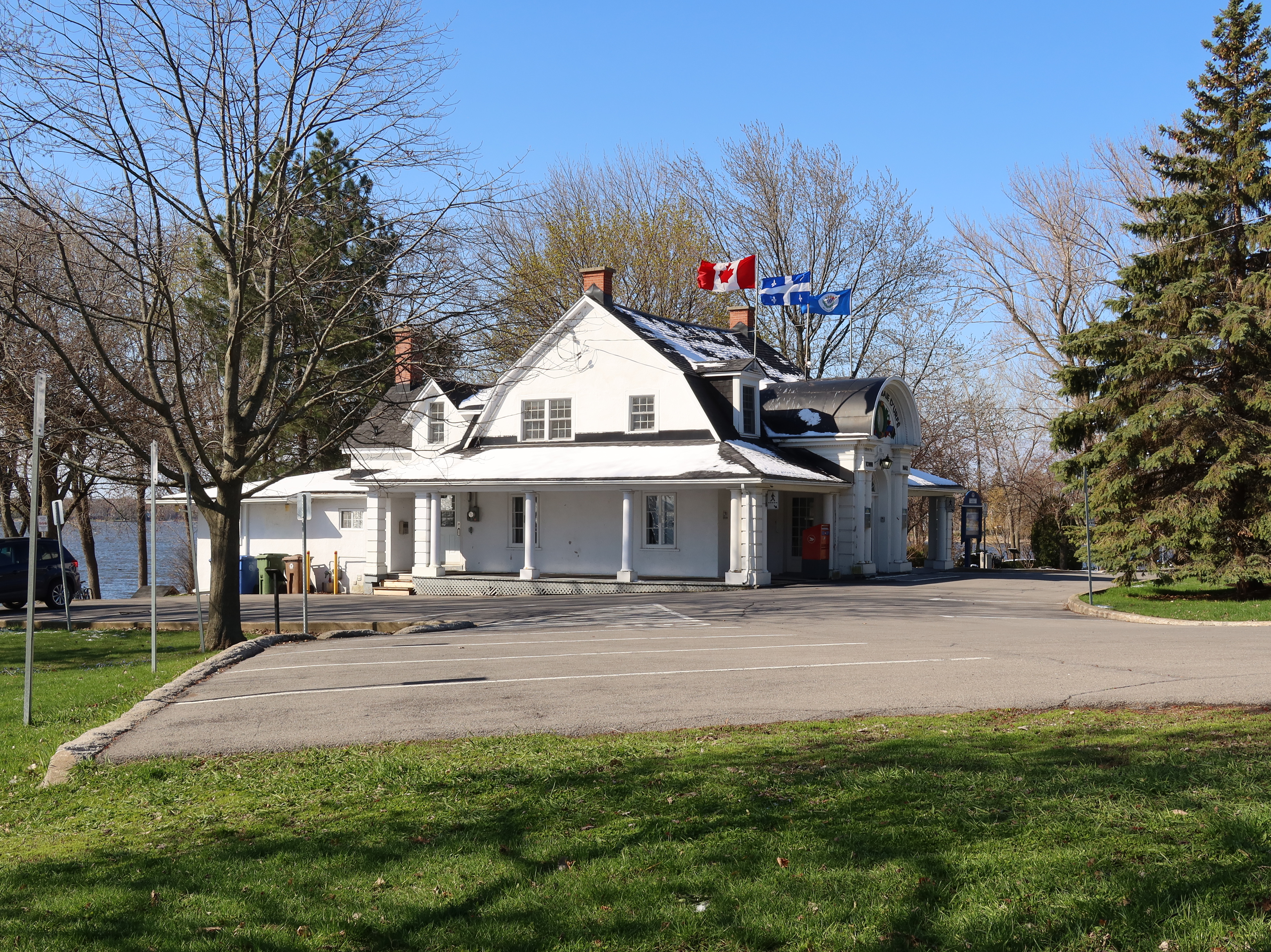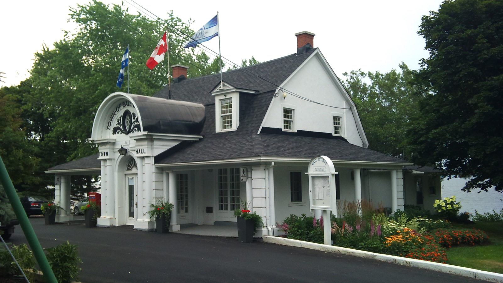 Baie-D'Urfé had at the time a volunteer fire department and parts of the new building were used for the fire department. The volunteer fire department became a casualty of the the Montreal merger years. As you can see in the below aerial images there wasn't a separate fire station building in 2005. The building of the Montreal fire department at 330 Surrey was built in 2006.