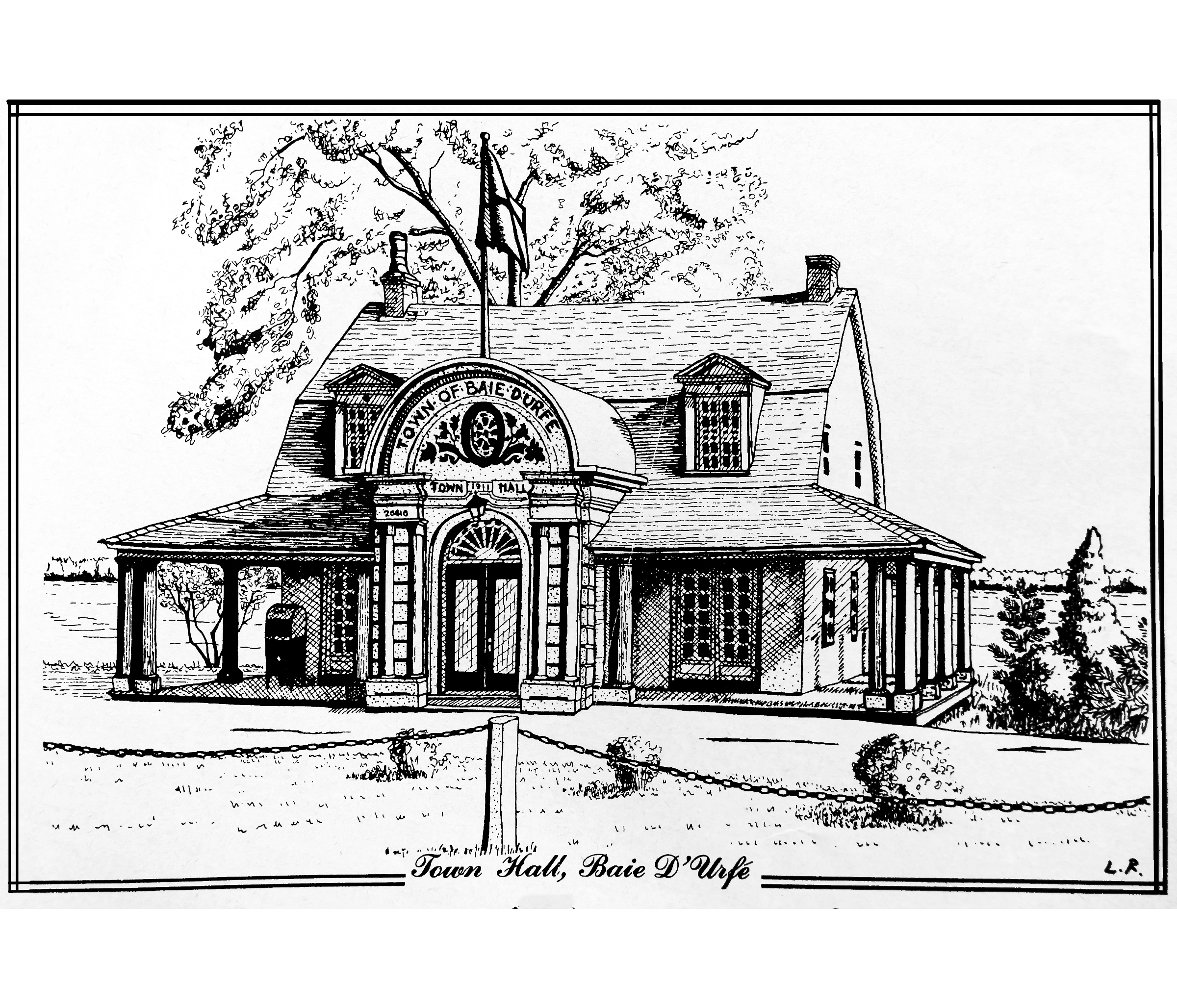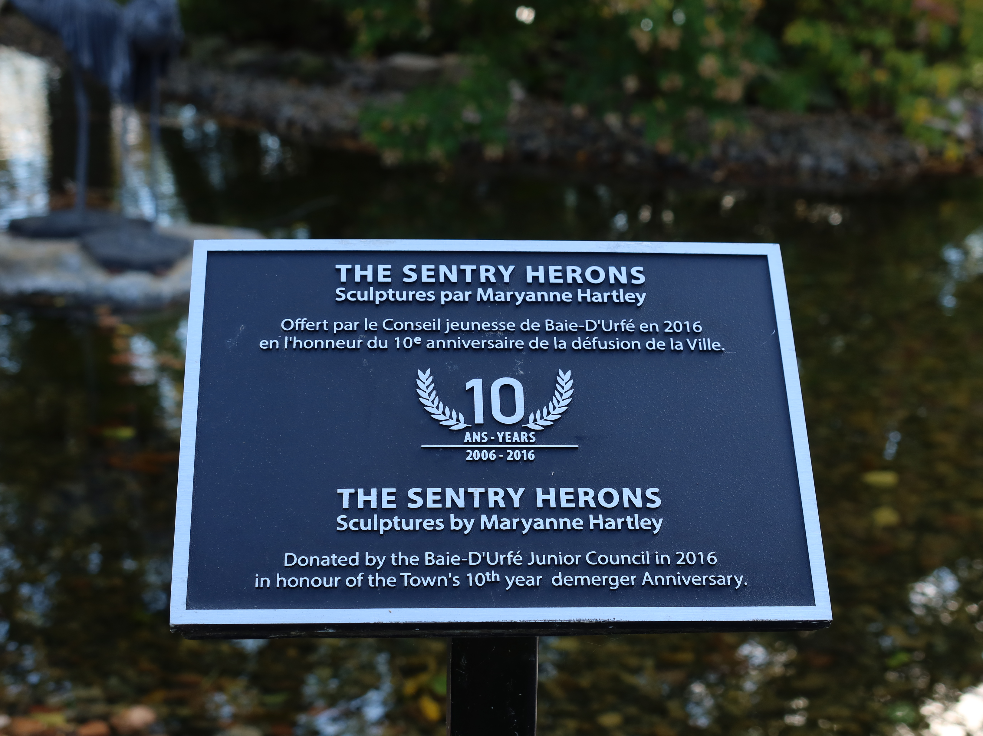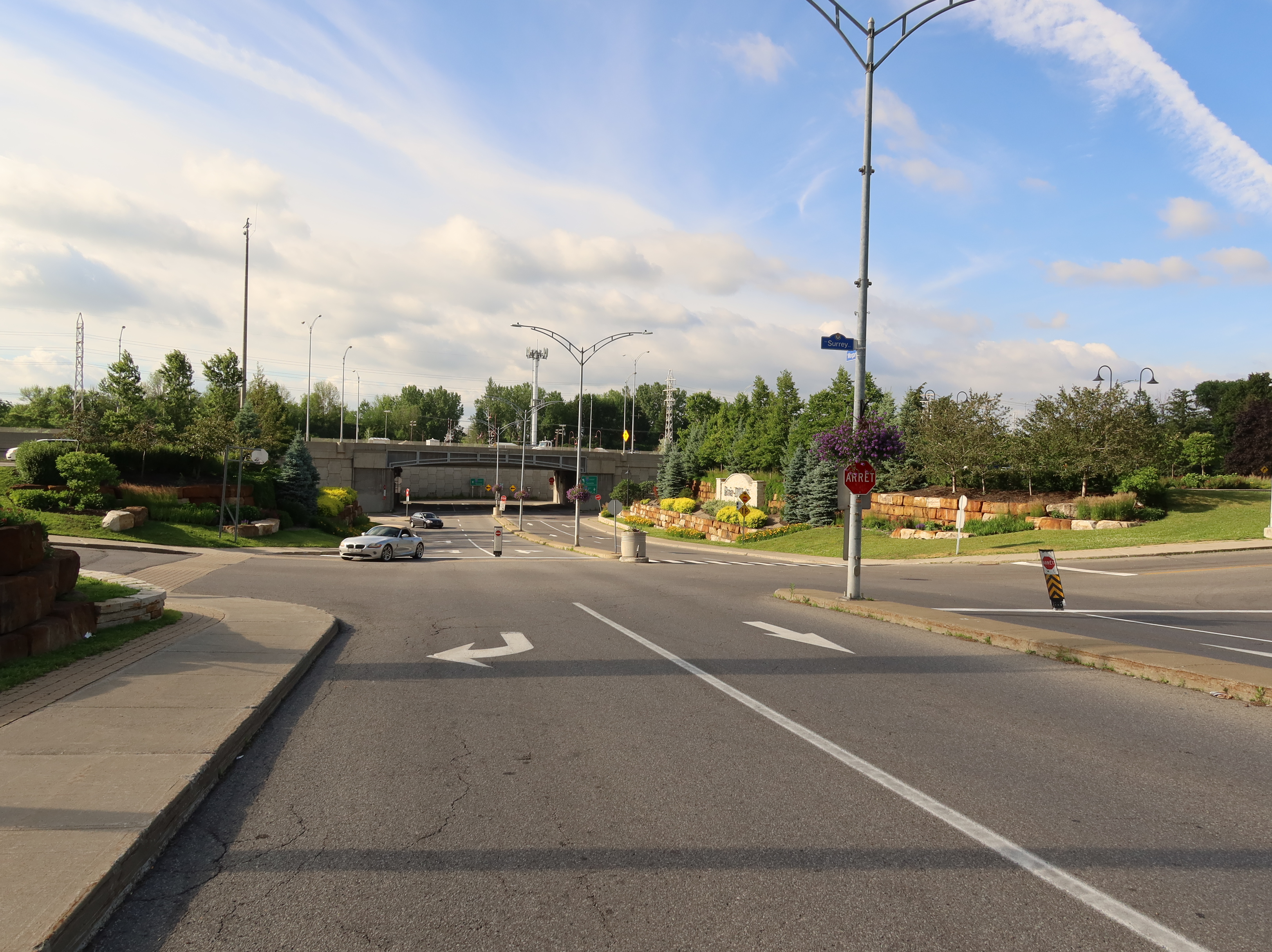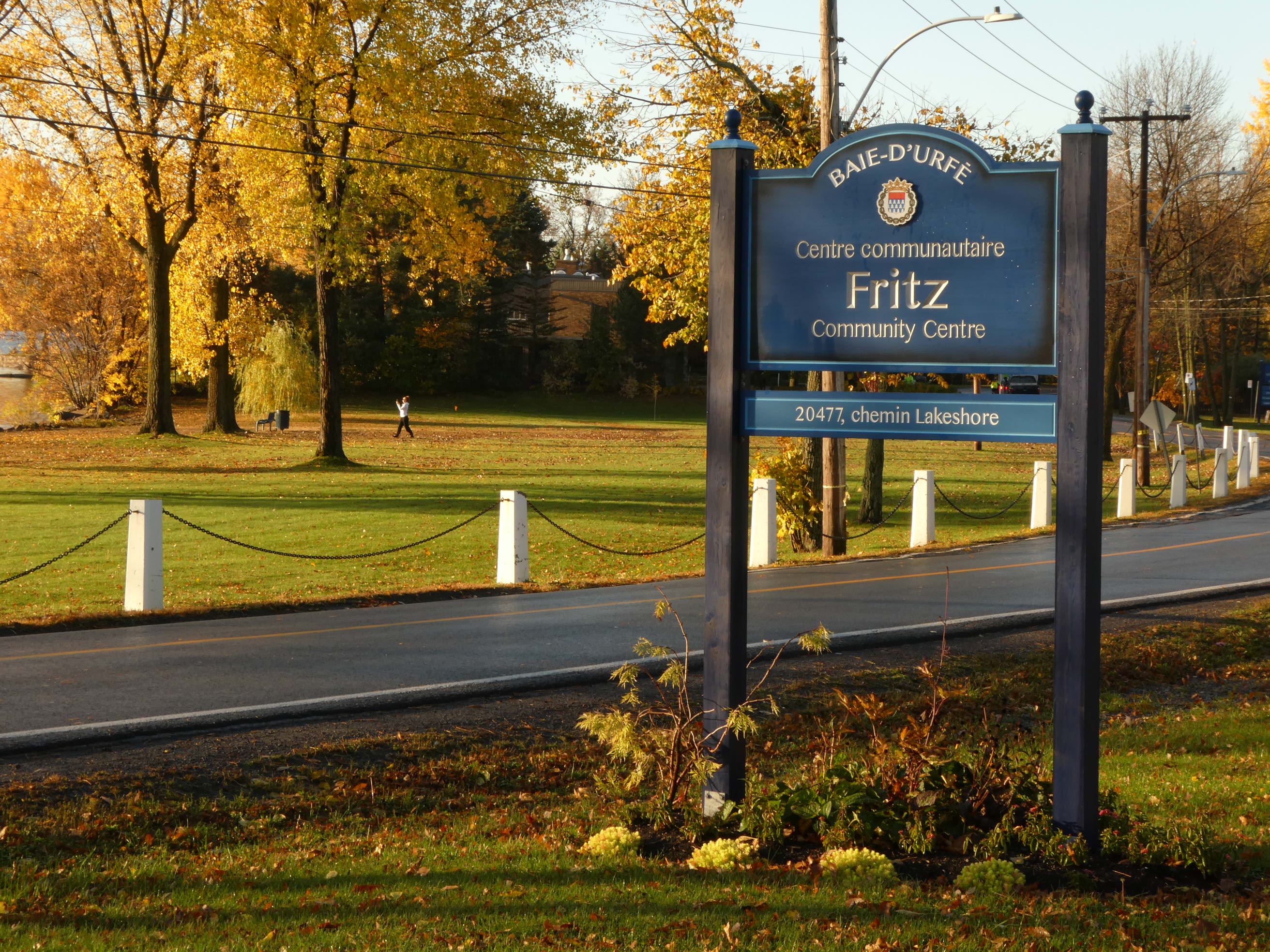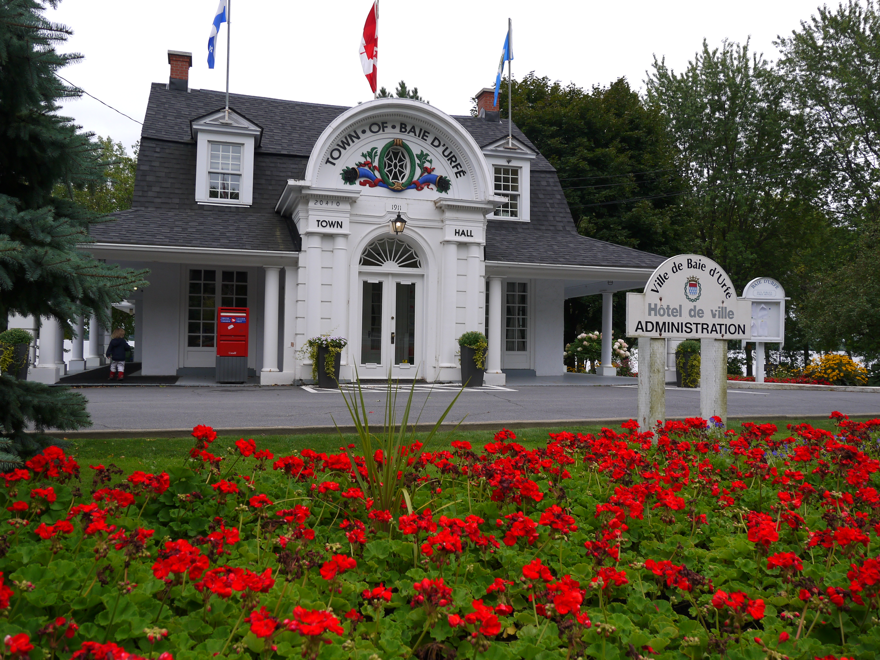 A much nicer entrance area was designed to mark Baie-D'Urfé's 100th year of incorporation. This new entrance with flowers, trees, and natural stone boulders was inaugurated on Sunday, June 19, 2011, by Mayor Maria Tutino.
