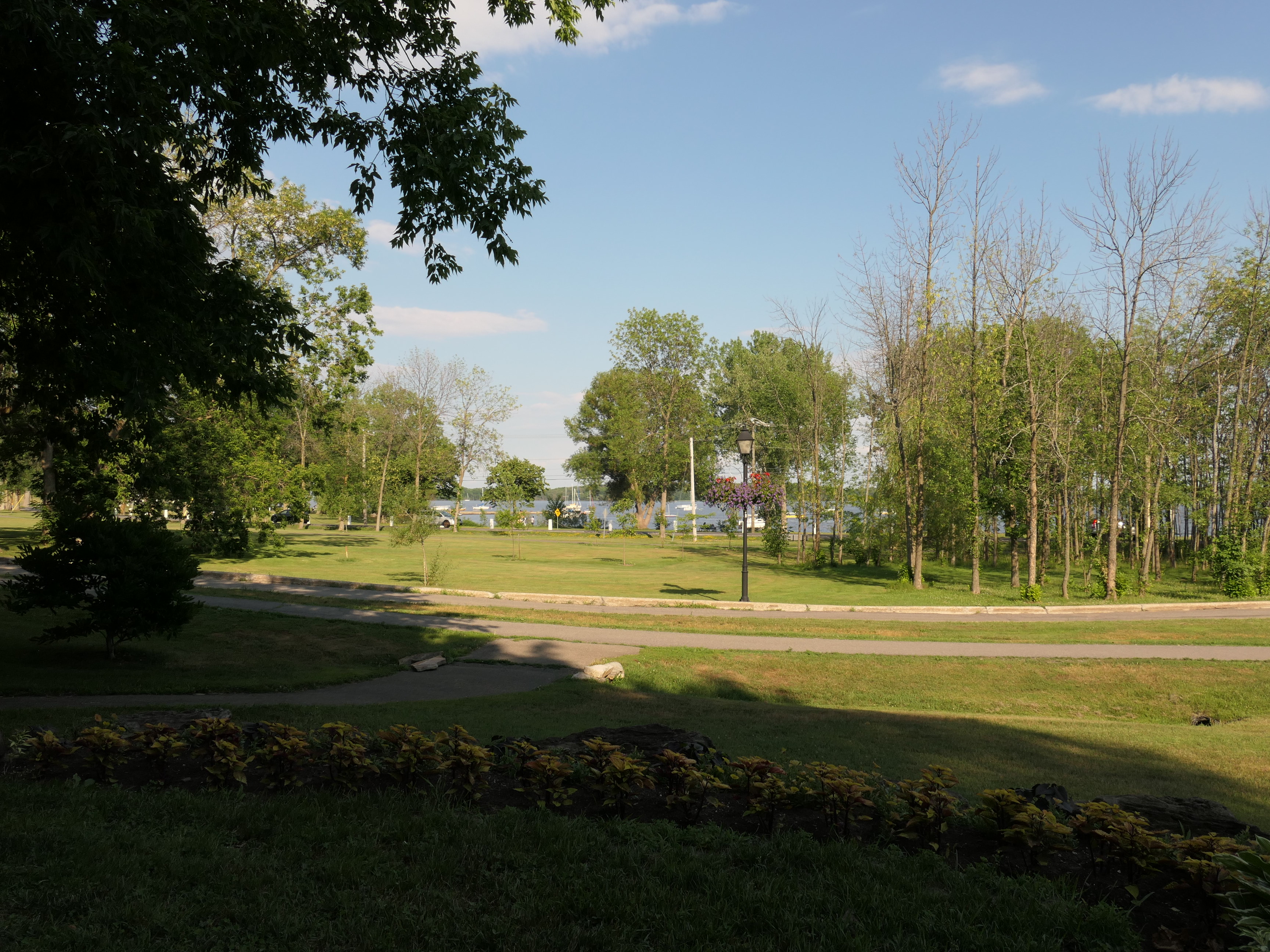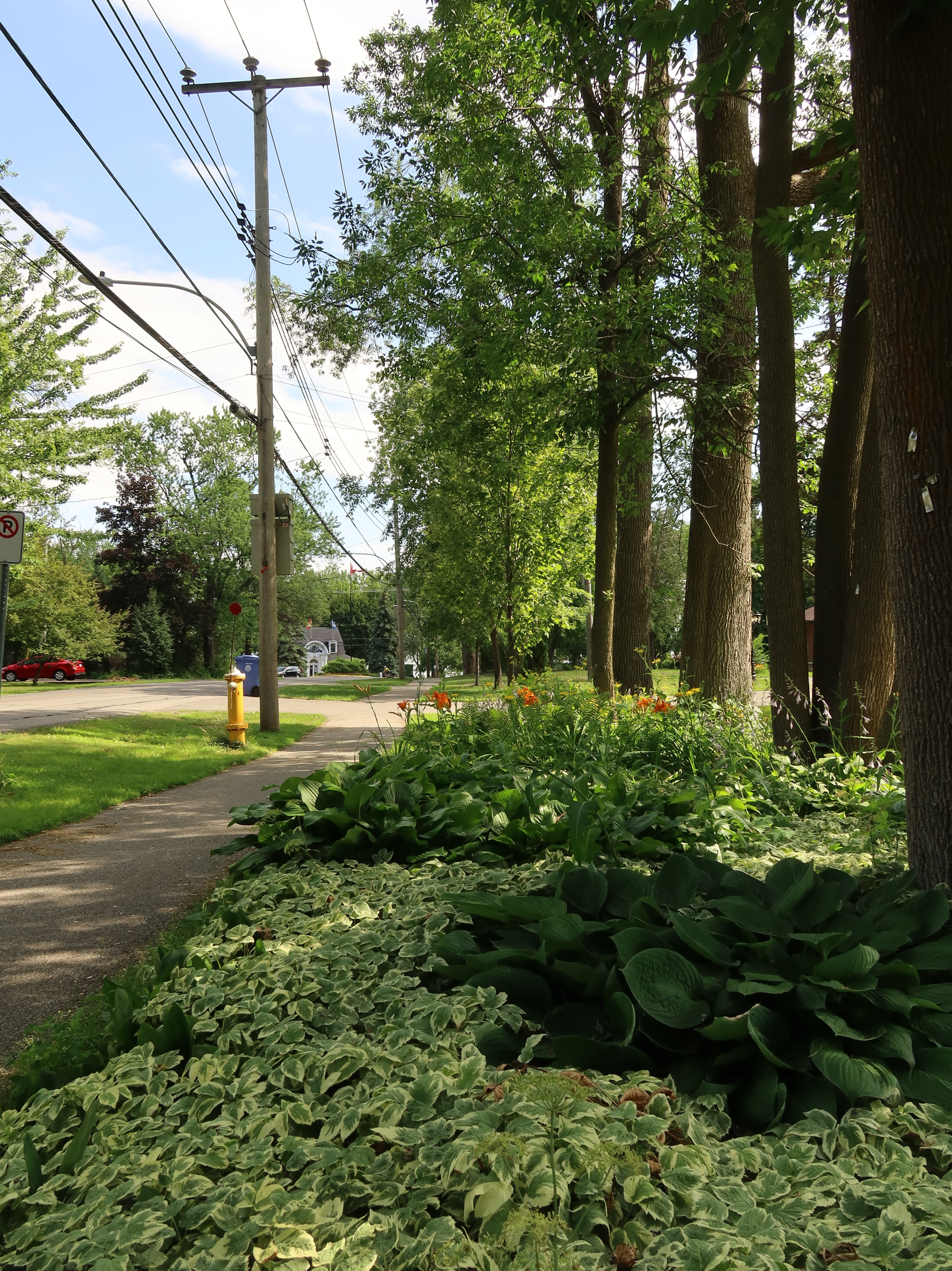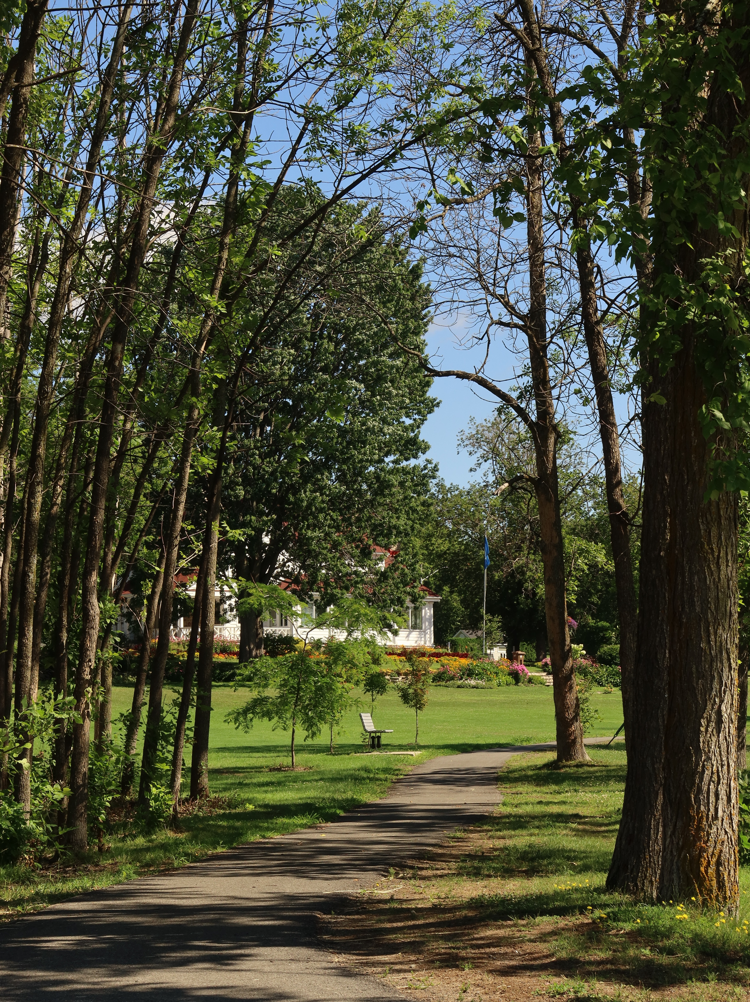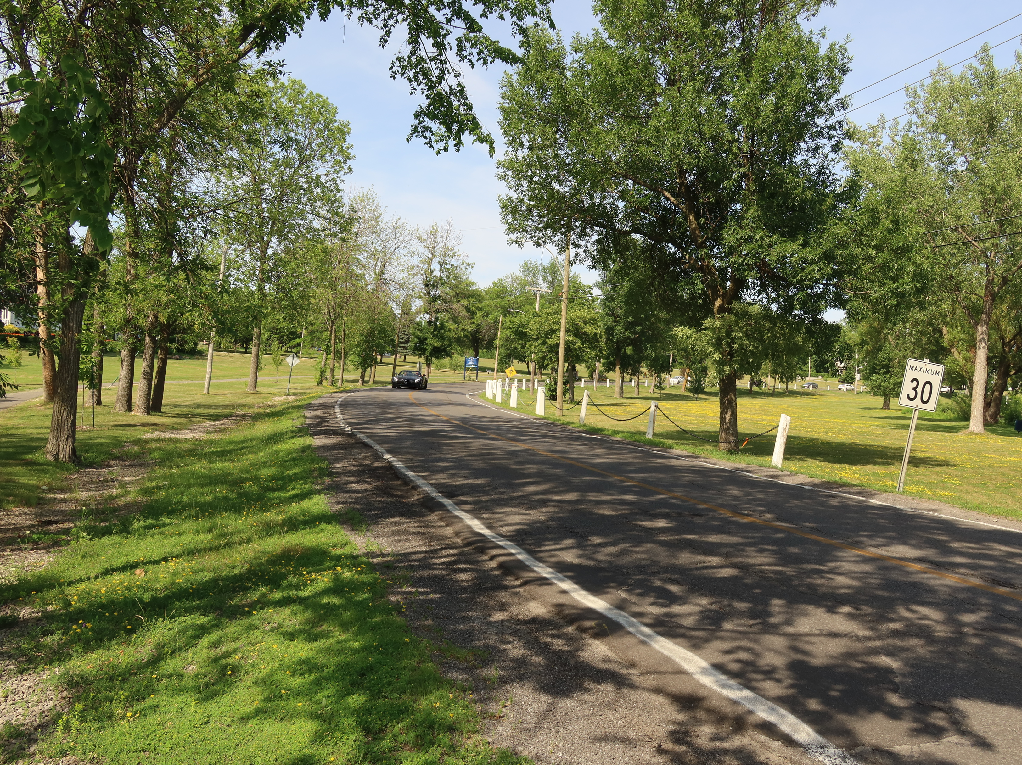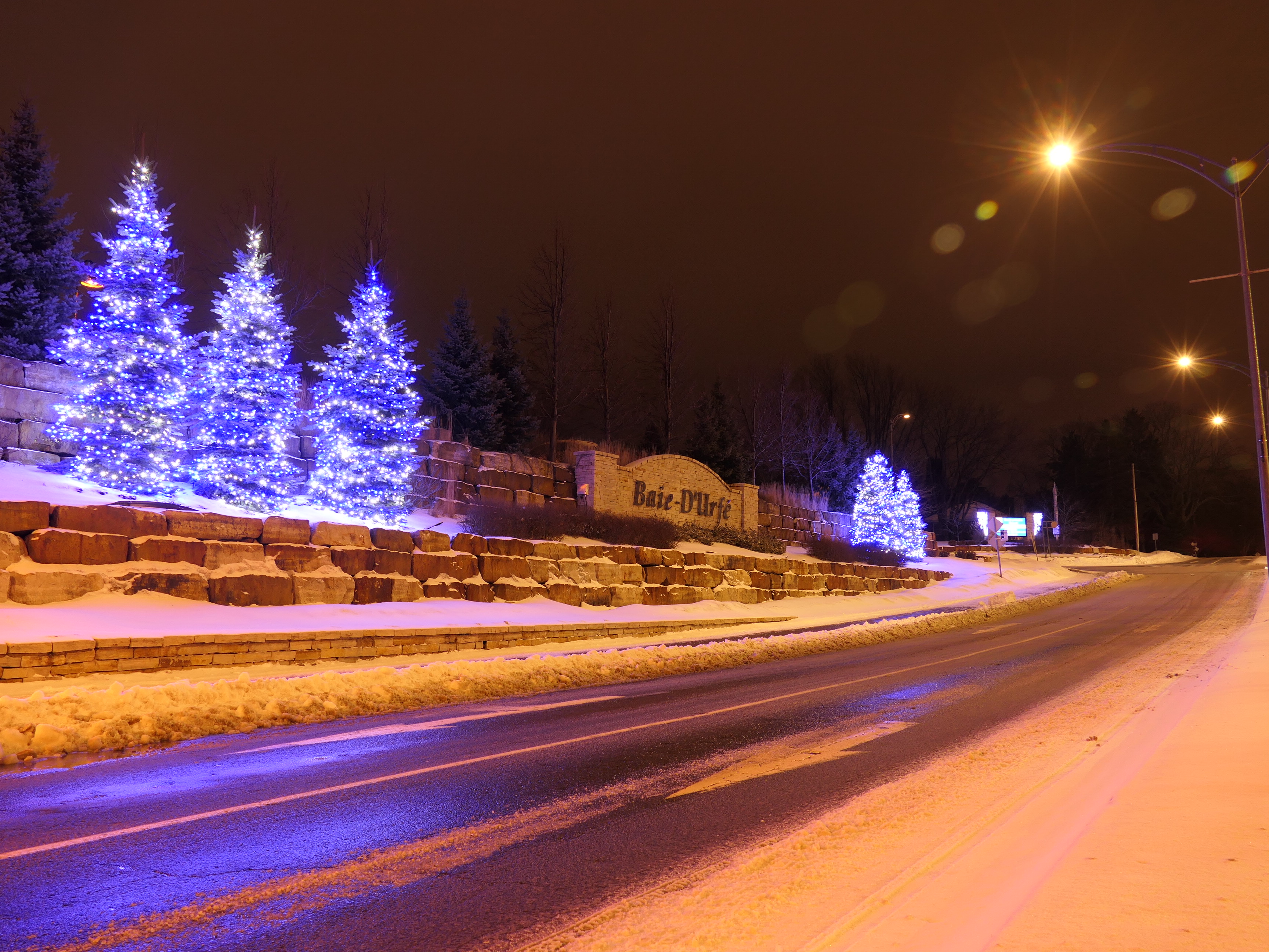 A much nicer entrance area was designed to mark Baie-D'Urfé's 100th year of incorporation. This new entrance with flowers, trees, and natural stone boulders was inaugurated on Sunday, June 19, 2011, by Mayor Maria Tutino.