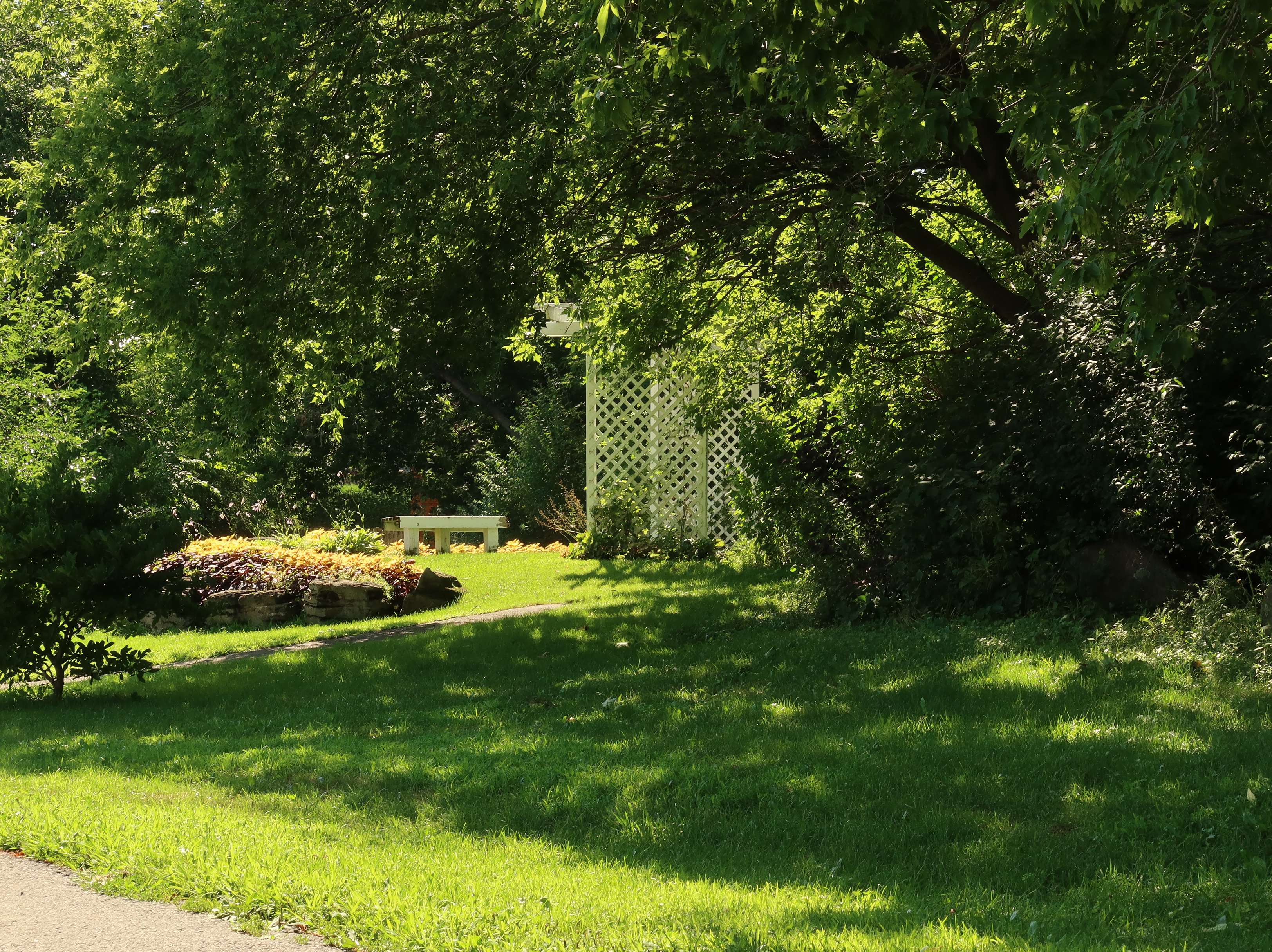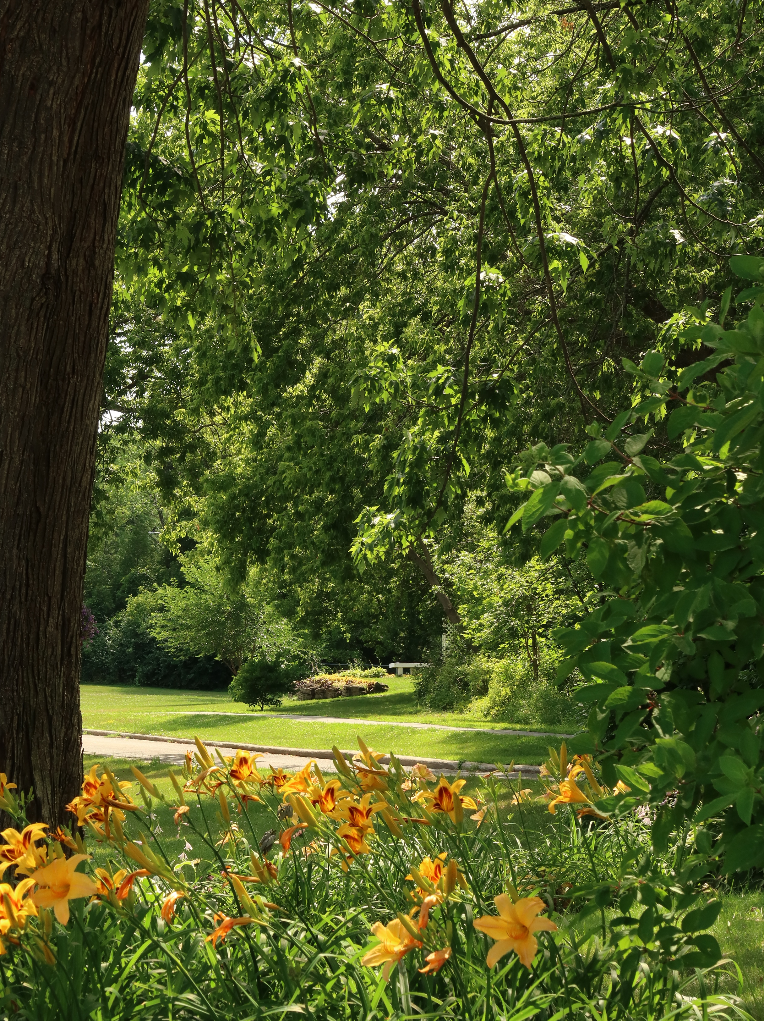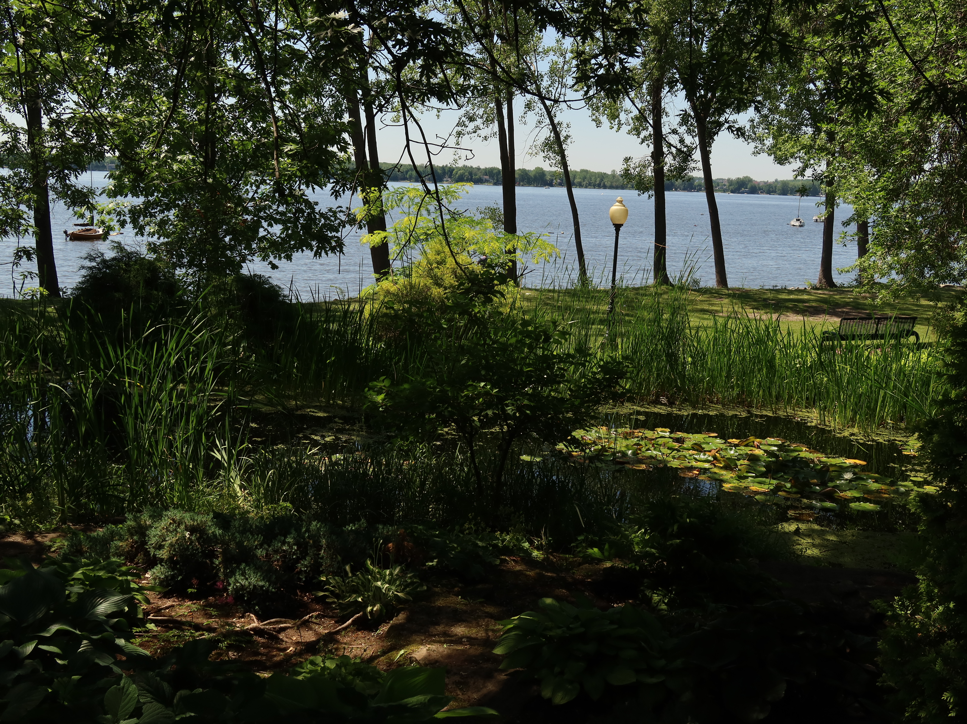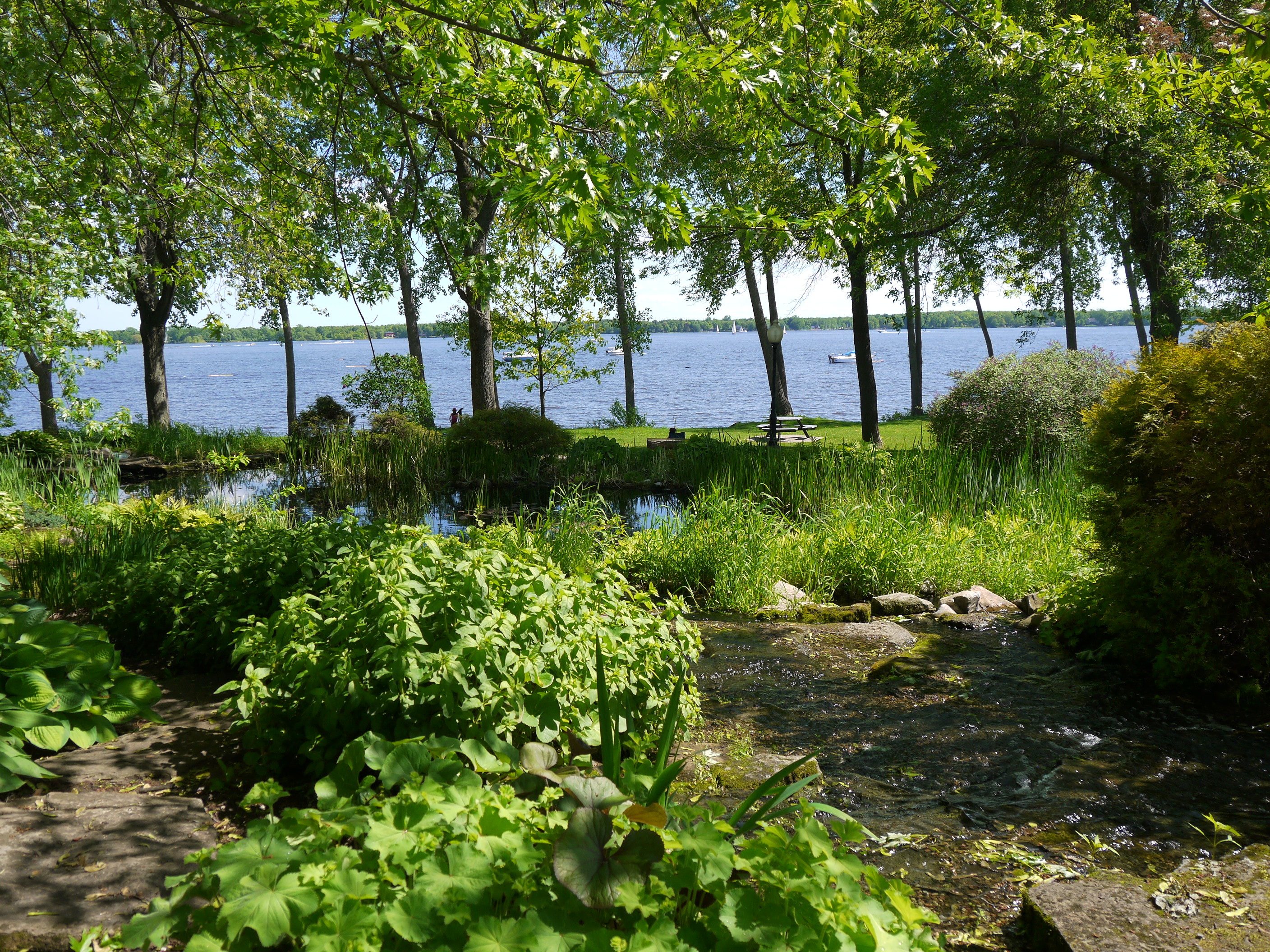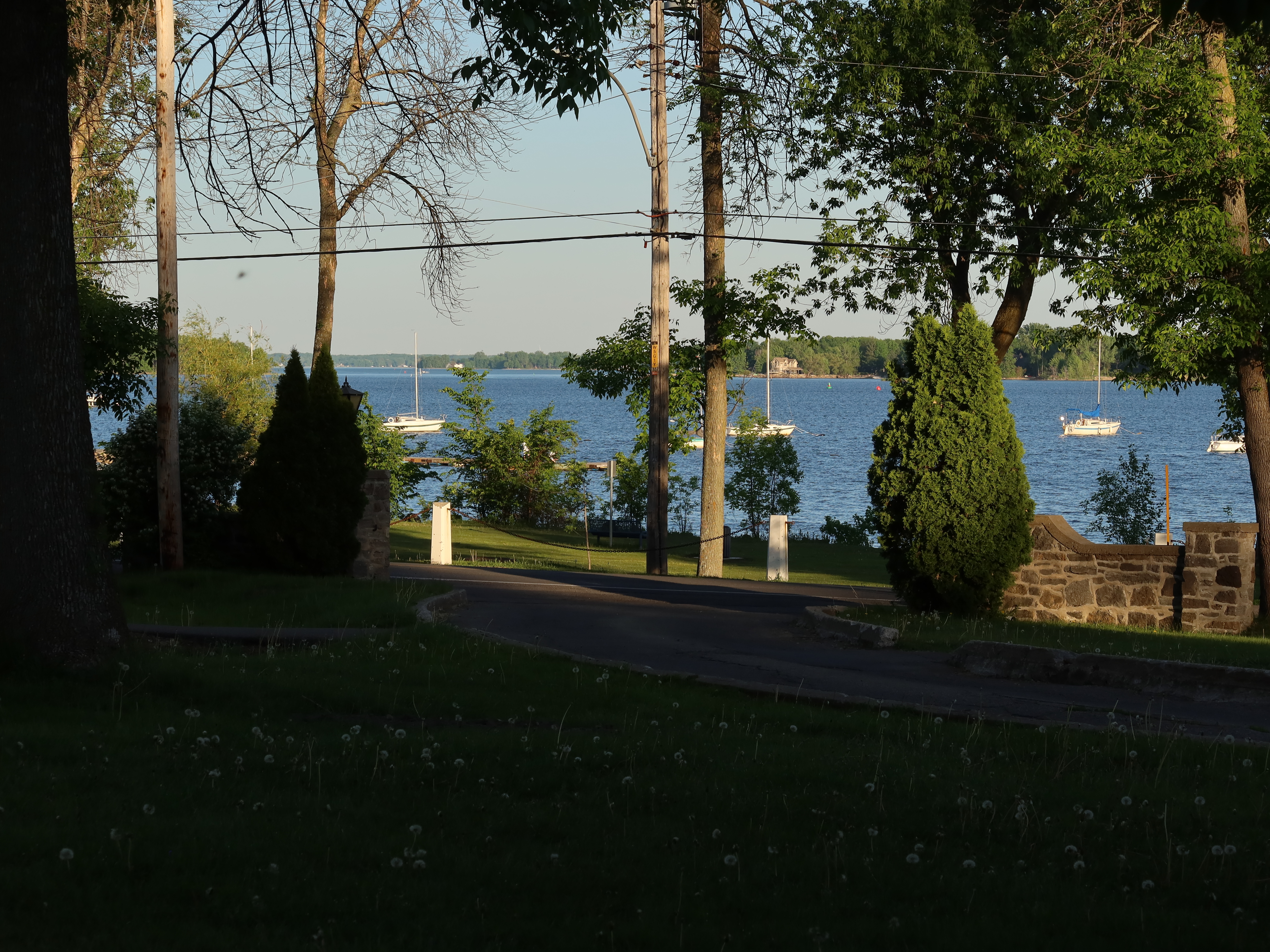 A much nicer entrance area was designed to mark Baie-D'Urfé's 100th year of incorporation. This new entrance with flowers, trees, and natural stone boulders was inaugurated on Sunday, June 19, 2011, by Mayor Maria Tutino.