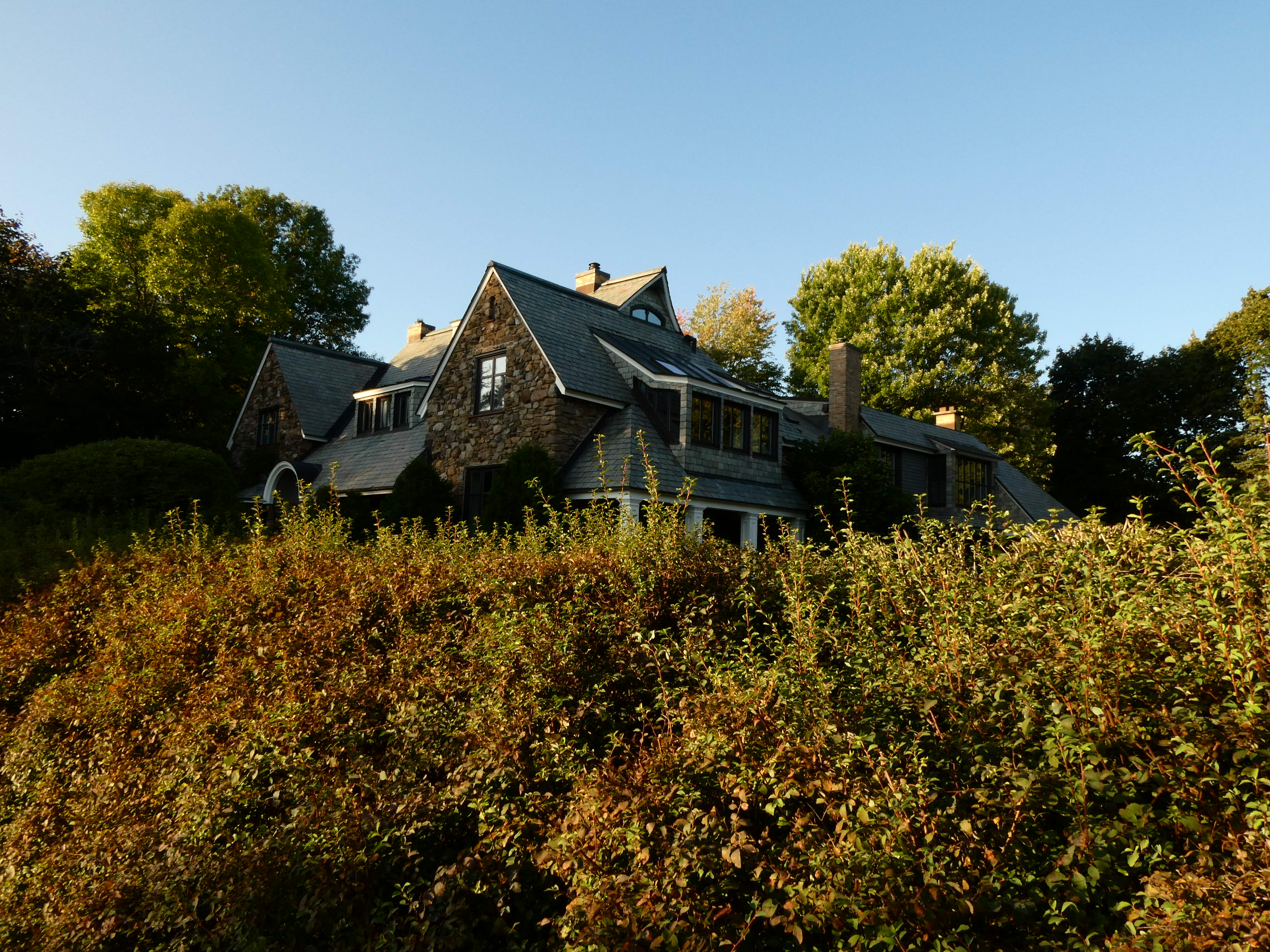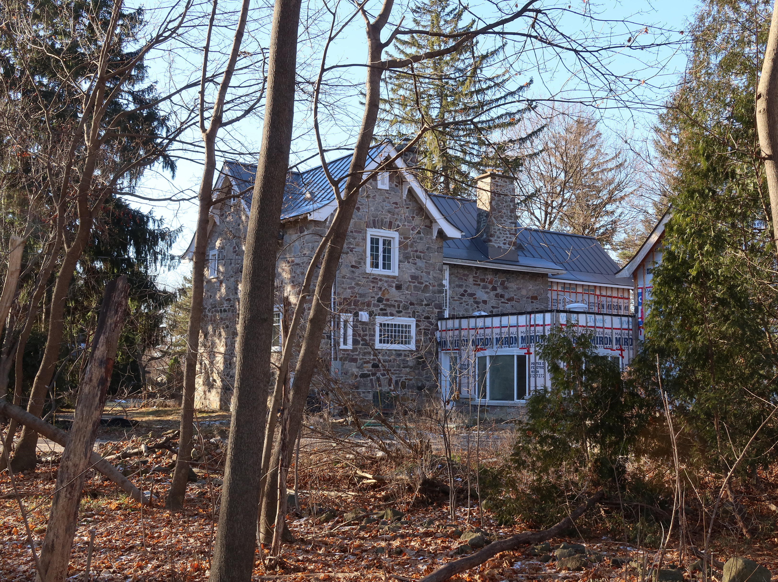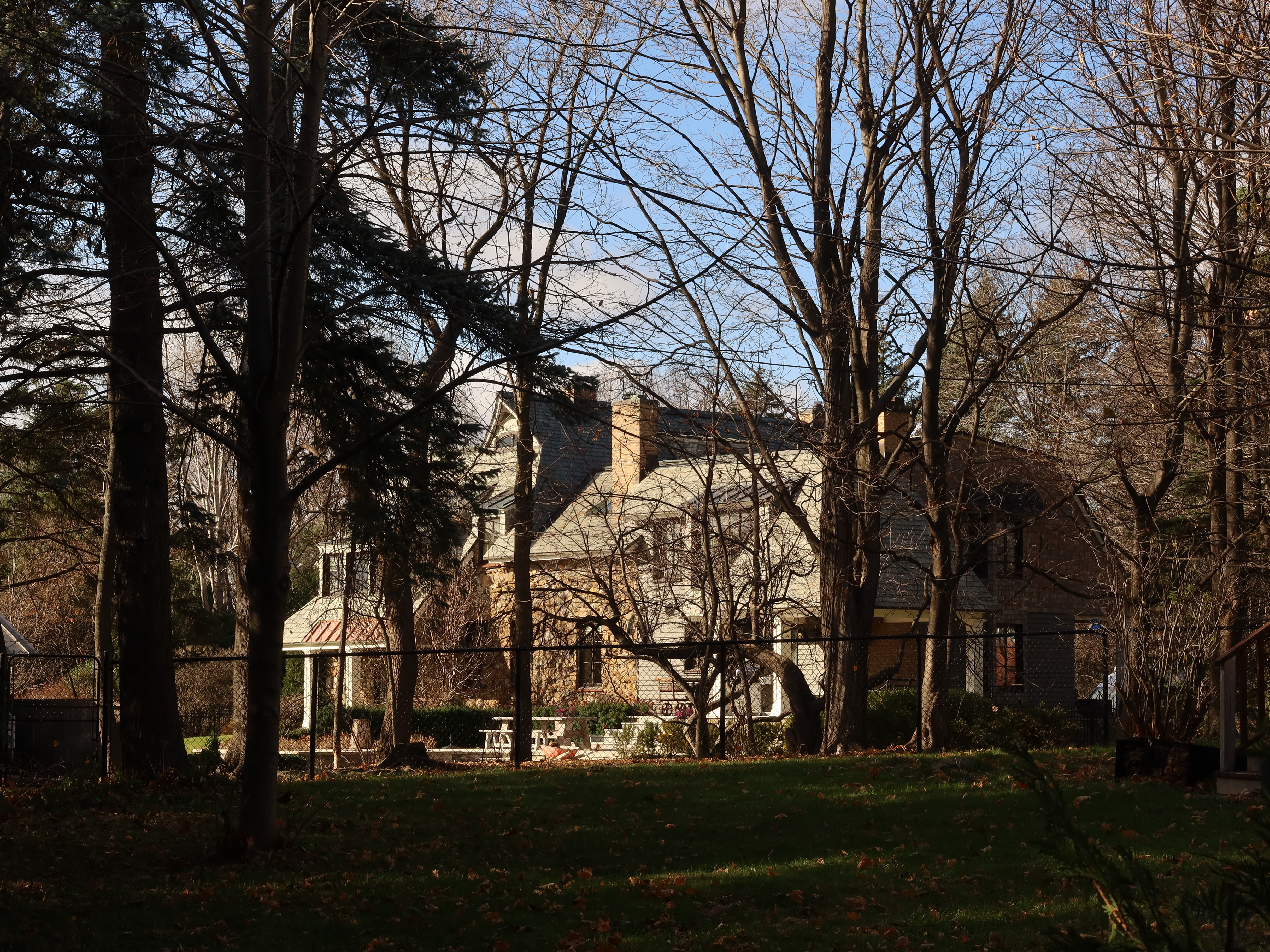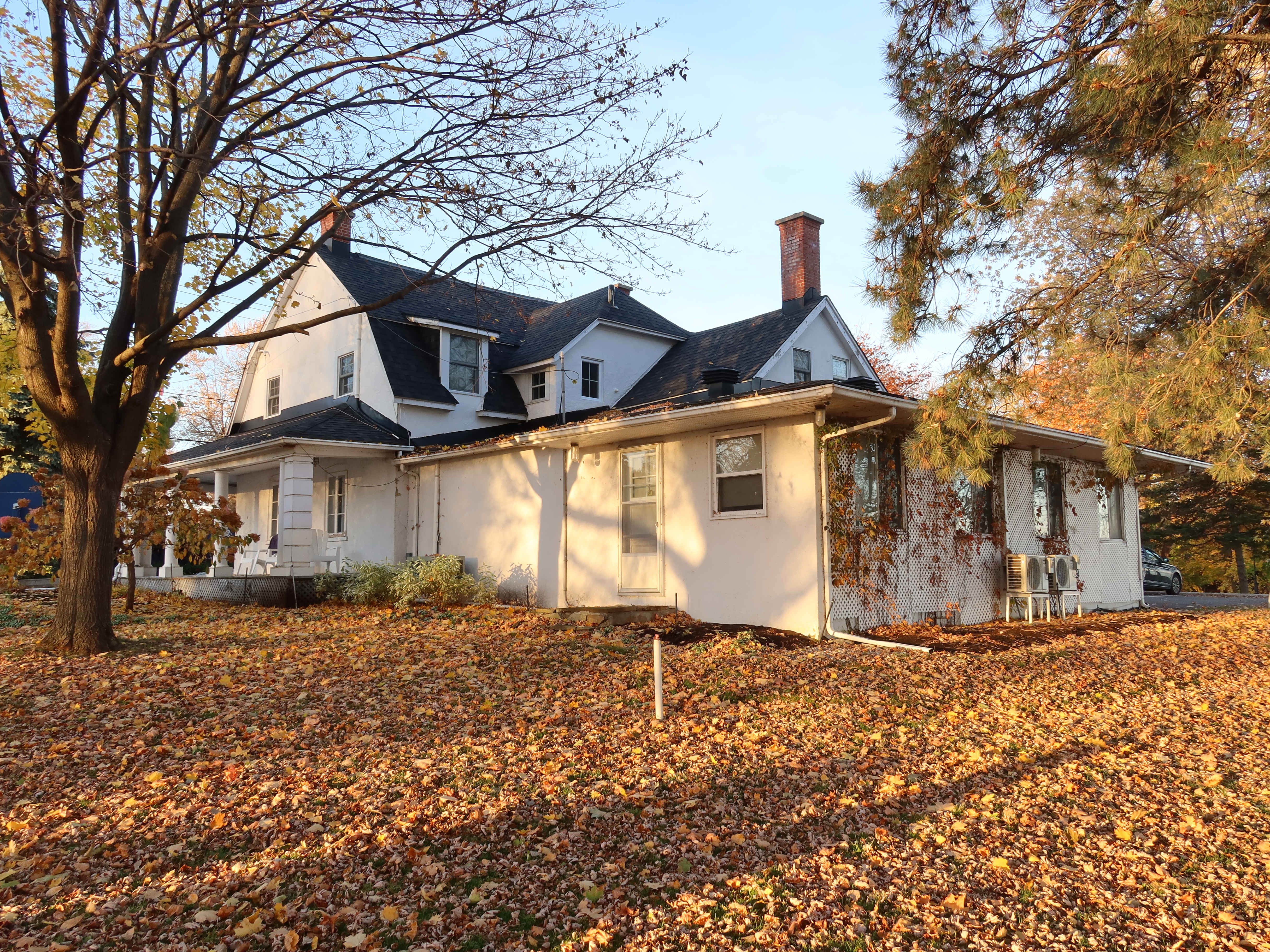 Maxwelton view from the east, photo: Nov. 2020, the modern extension is to the right, the original house ended at the chimney in the center of the photo.