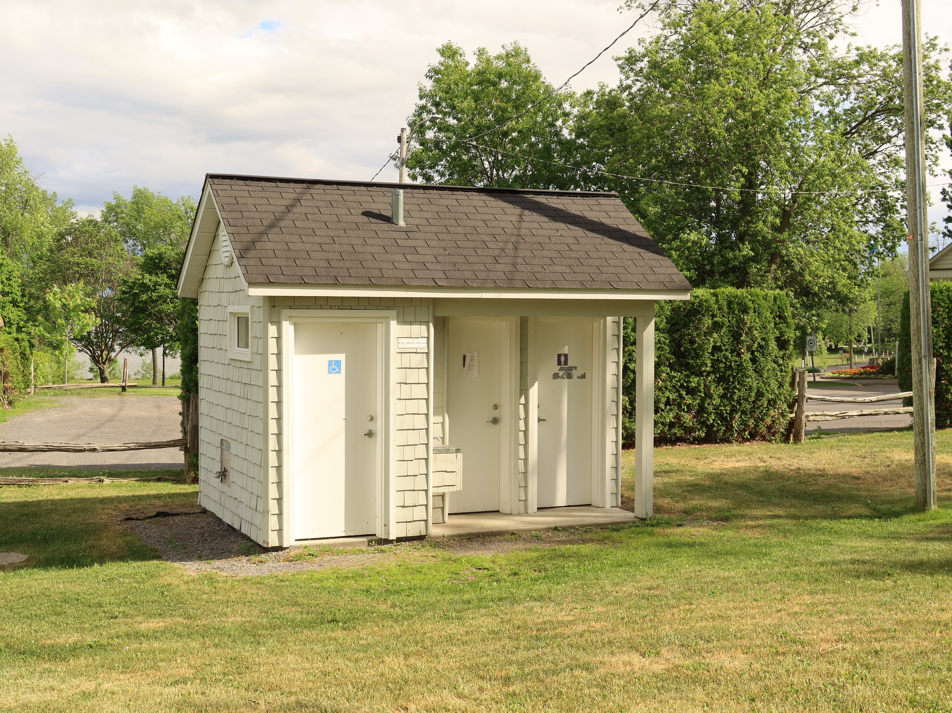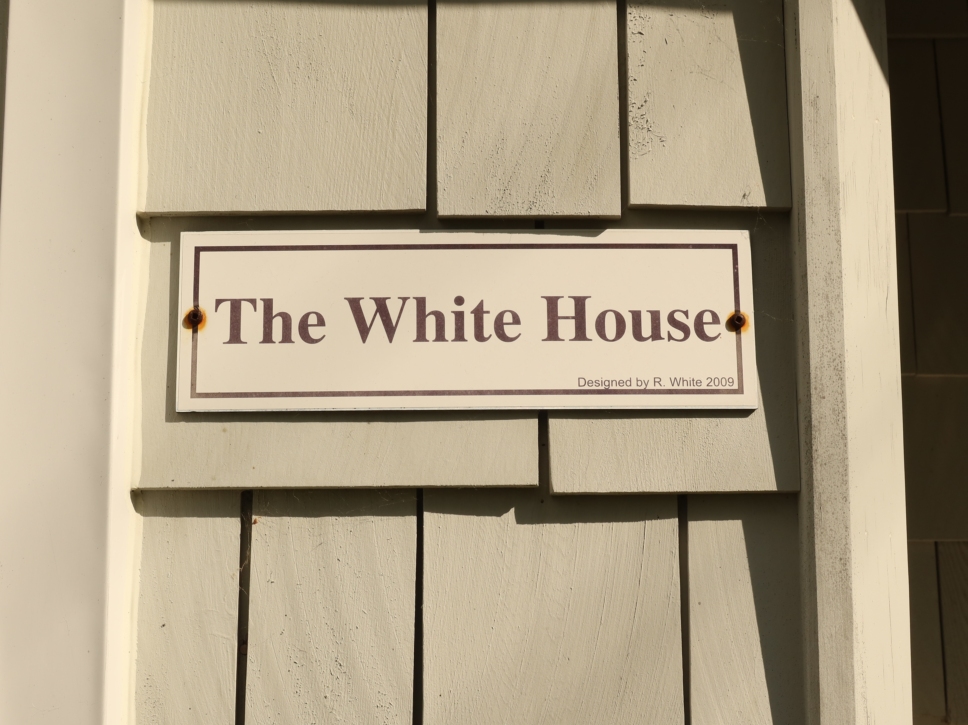 The sign on this small white building reads "The White House. Designed by R. White, 2009".