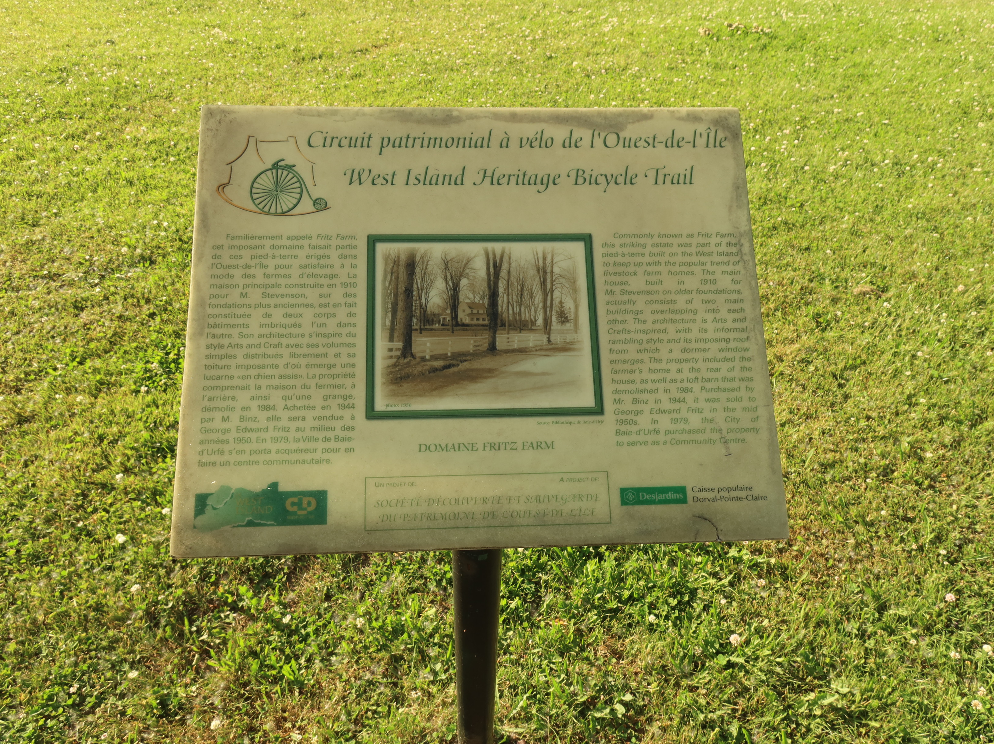 Max E. Binz (1896-1955), a textile manufacturer who had emigrated to Canada from Switzerland, bought farm lots 317 and 318 at the beginning of May 1944 from the J. A. Stevenson estate. He paid just $37500 after the estate had been unsuccessful at selling it for over 30 years. Mr. Binz owned already the lot to the west, 316, which he had purchased from the Pilon family. Most of the land was gradually sold off after 1945. Mr. George Fritz, a businessman, bought the remaining land, 19 acres, during the summer of 1955. He kept a small herd of sheep, black Angus, horses and ponies. Children could come for pony rides and learn how to take care of the animals. George E. Fritz was born Nov. 10, 1890 in Blissfield, Michigan, son of John George Fritz and Caroline C. Fritz. John had immigrated to the US from Germany while Caroline was born in Michigan to German parents. George Fritz died Jan. 19, 1971 in Montreal but wanted to be buried in the family plot in Blissfield, Michigan. He was not married but lived with Pauline Charron at the "Fritz Farm" until his death.