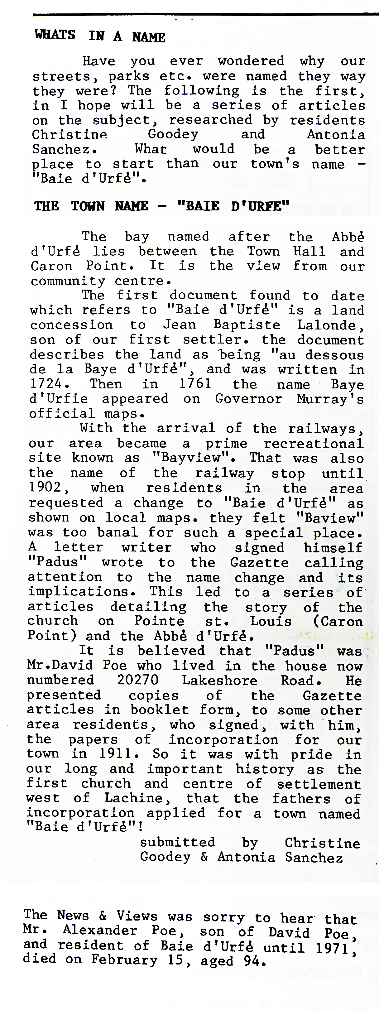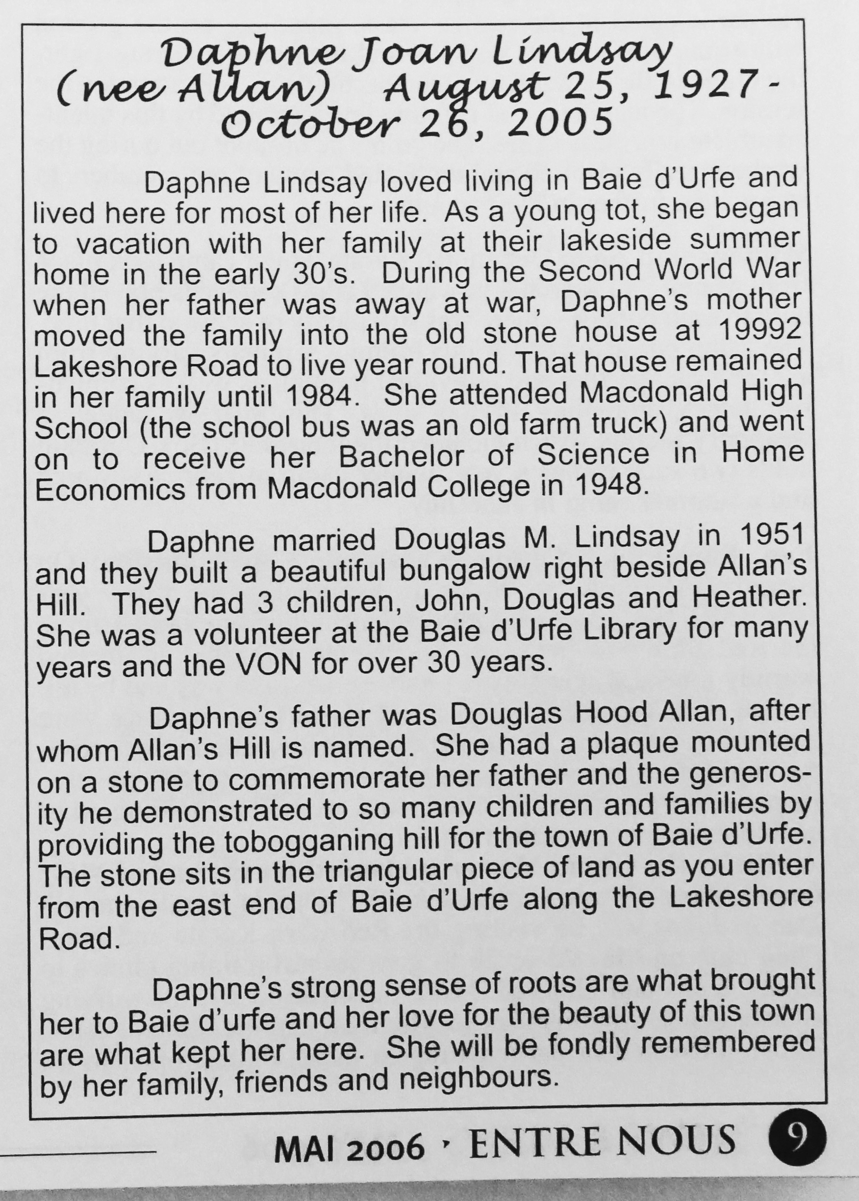 Do you have some stories or pictures about Baie-D’Urfé that you would like to share?