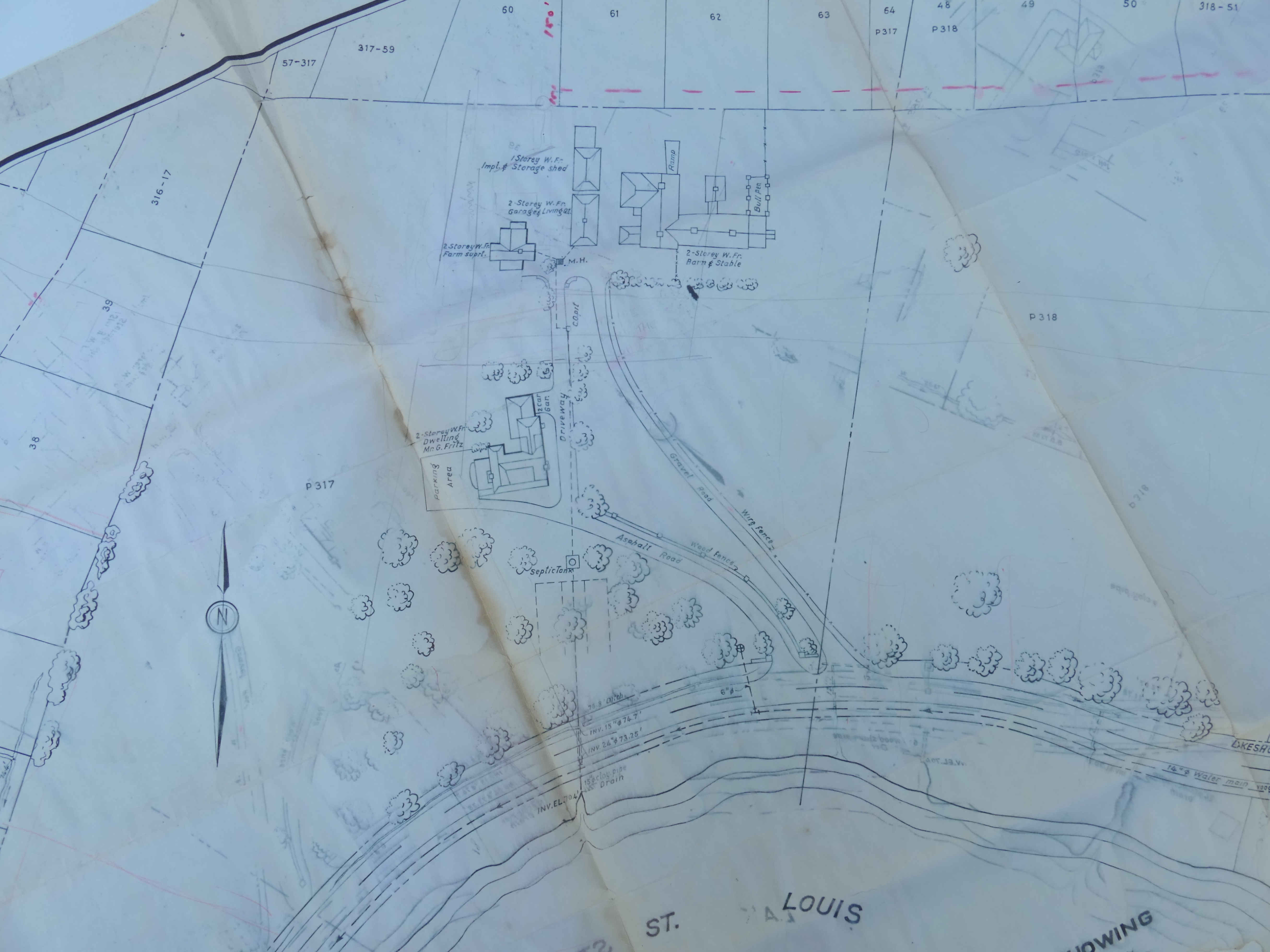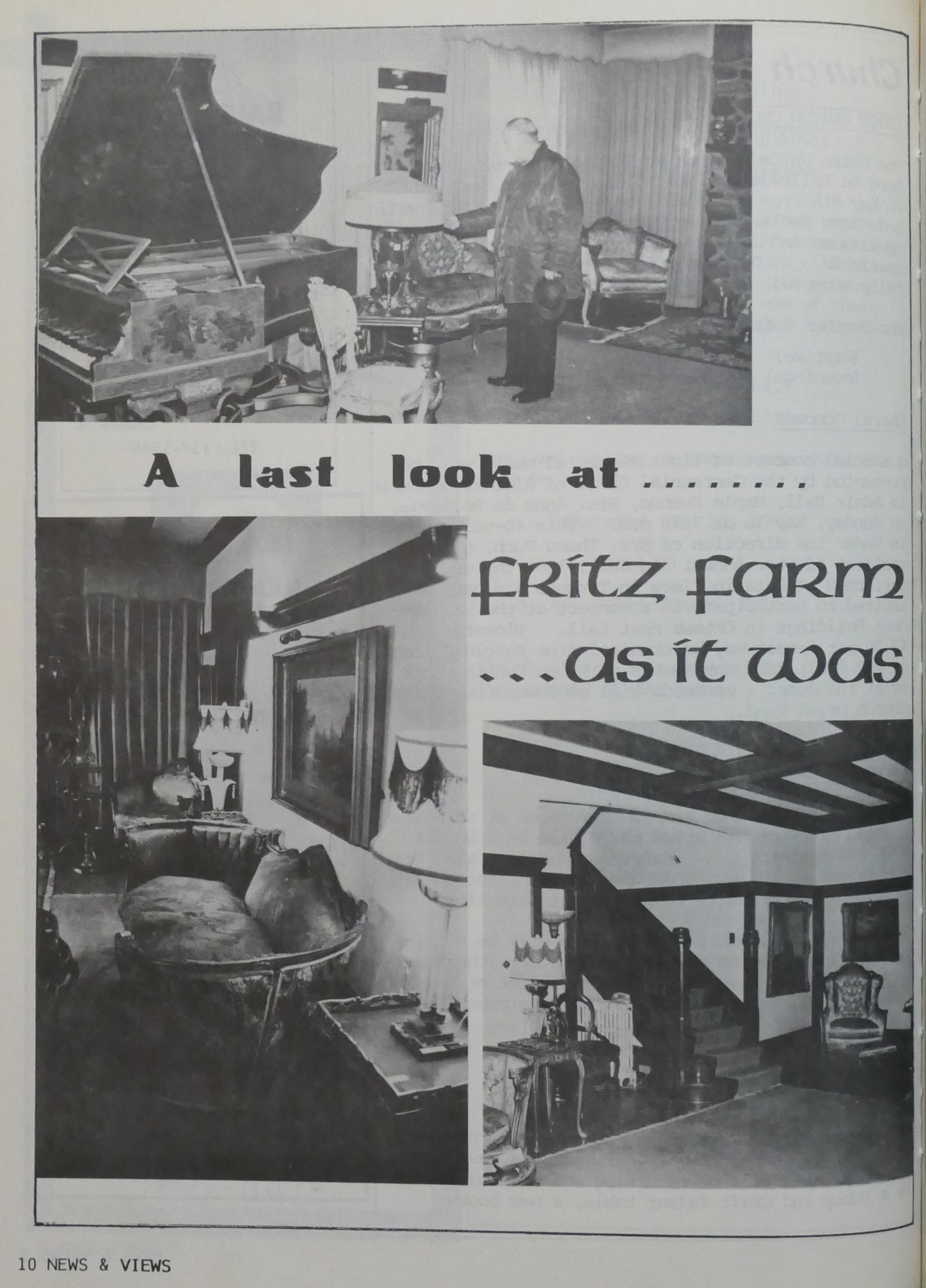 "Fritz" is a small part of what used to be the J. Alex Stevenson farm. The Fritz community center used to be the main farmhouse and it was surrounded by very large Elm trees. The smaller house behind the main house was the farm manager's house and next to it was another house with a garage and a small apartment on top. The big barn next to the garage was a large dairy barn. The barn pre-dated the Stevenson farmhouse. It was already there before Mr. Stevenson bought the property while the main farmhouse was built by Mr. Stevenson. Both the farmhouse as well as the farm managers house are built on much older foundations.