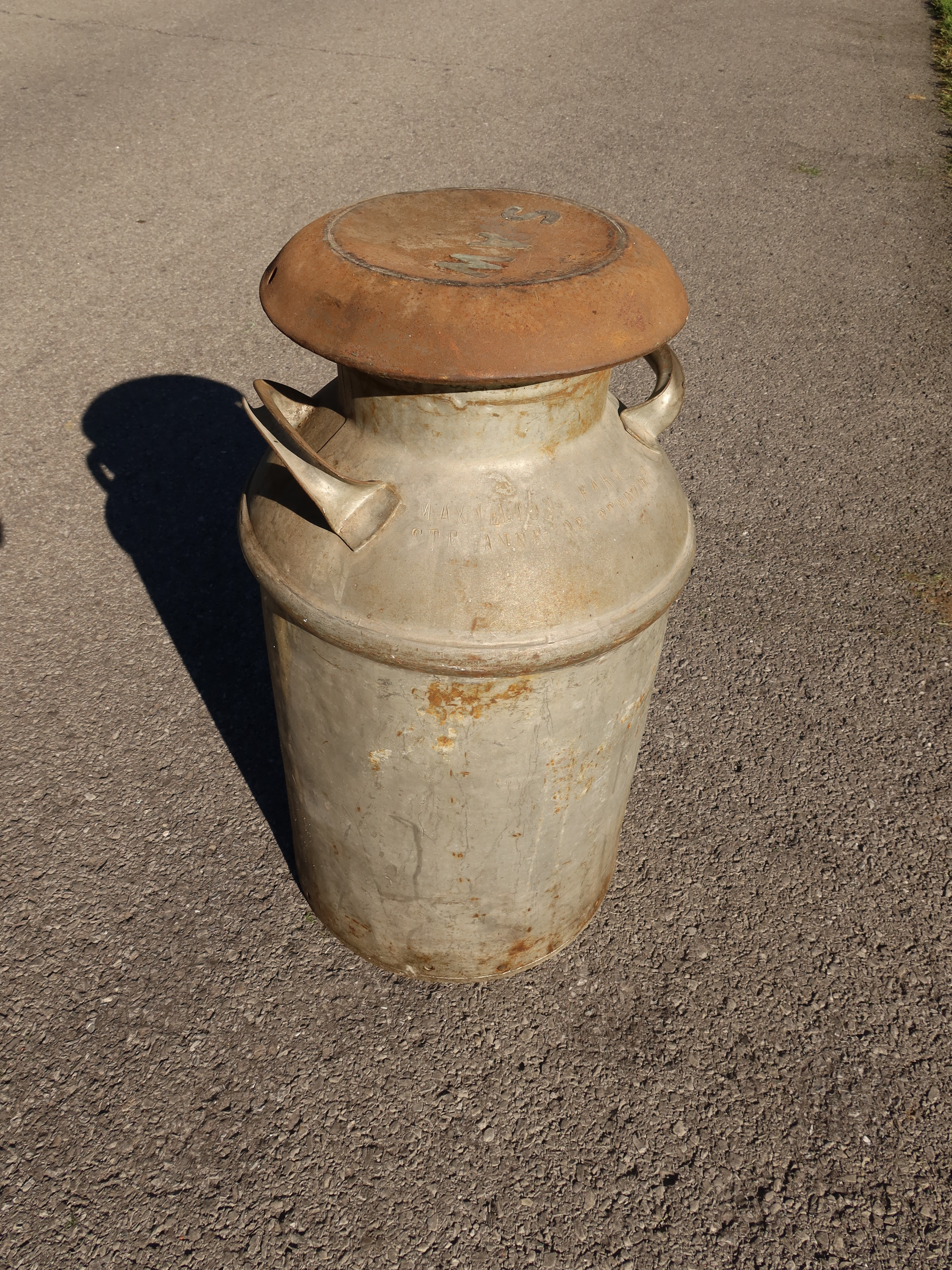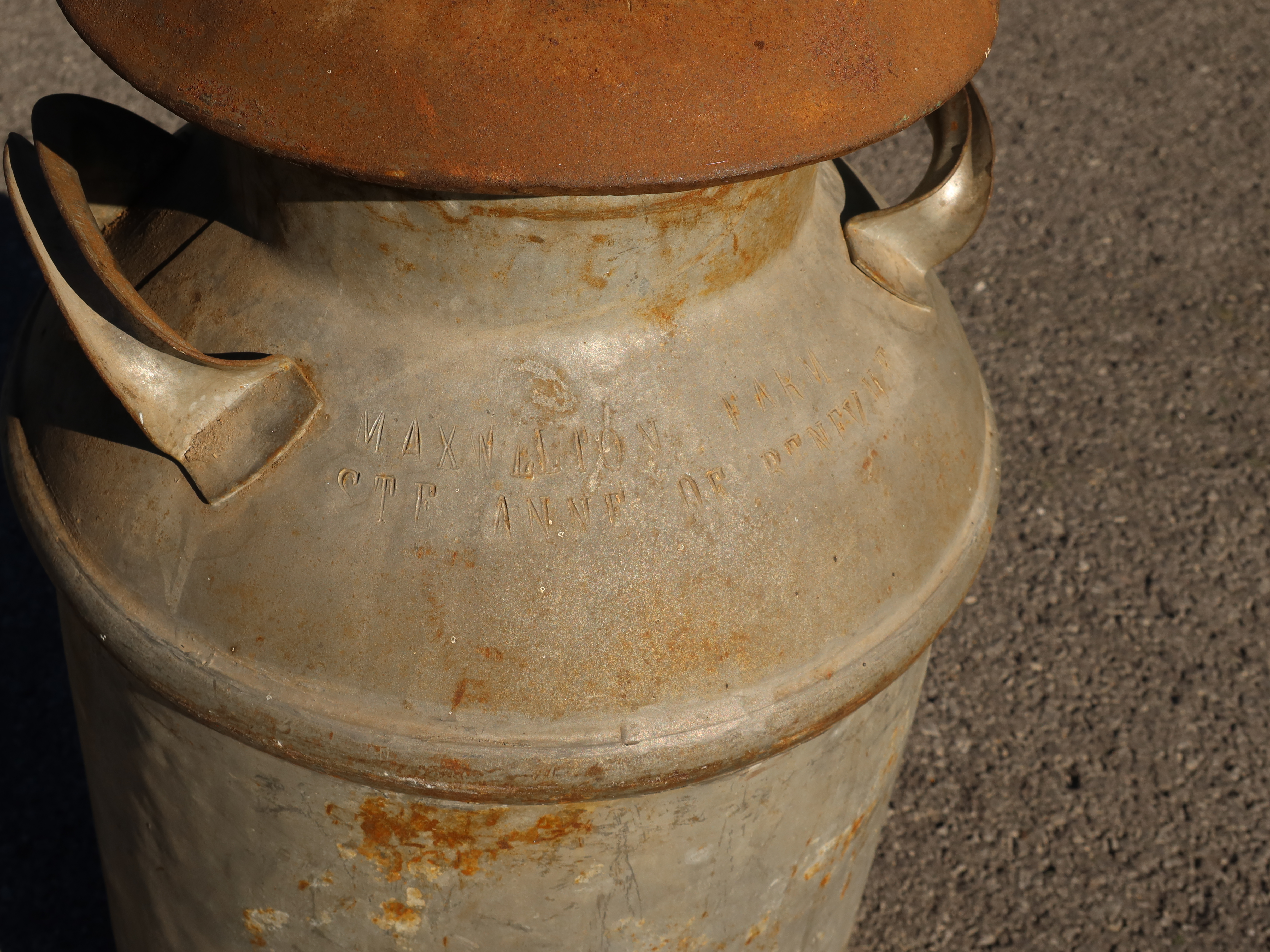 8 gal milk can with Maxwelton Farm Ste Anne de Bellevue engraved into it, source: Henry Yates
