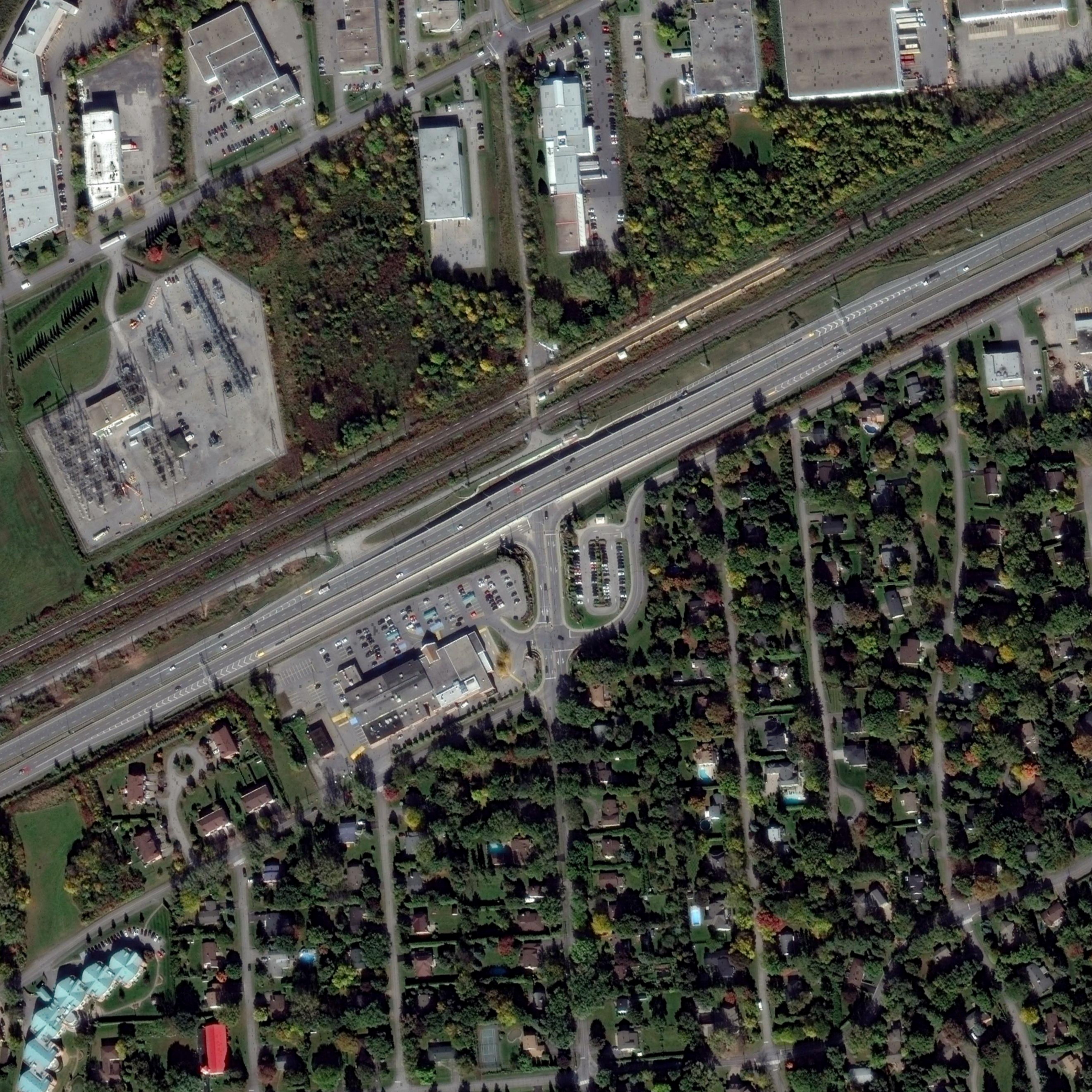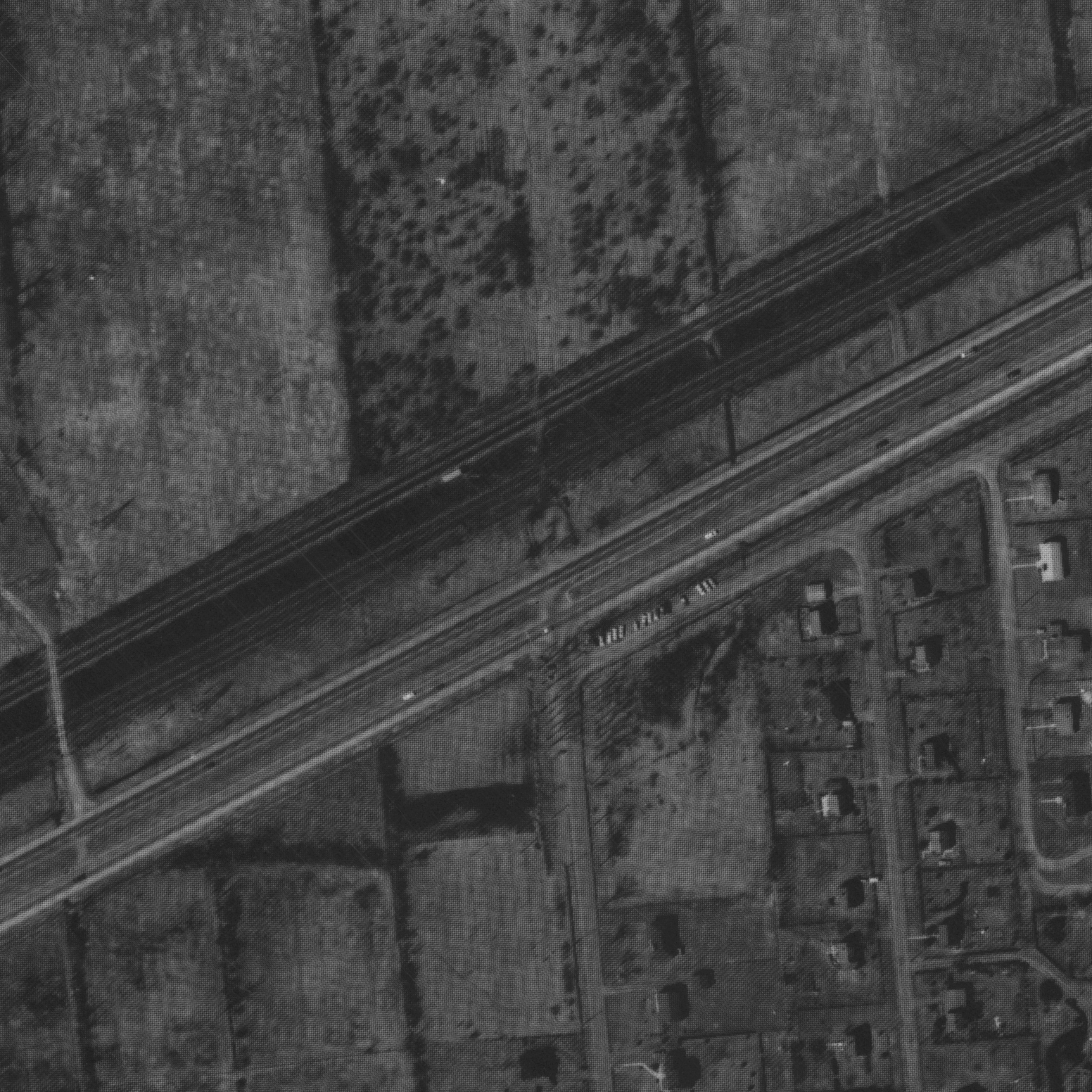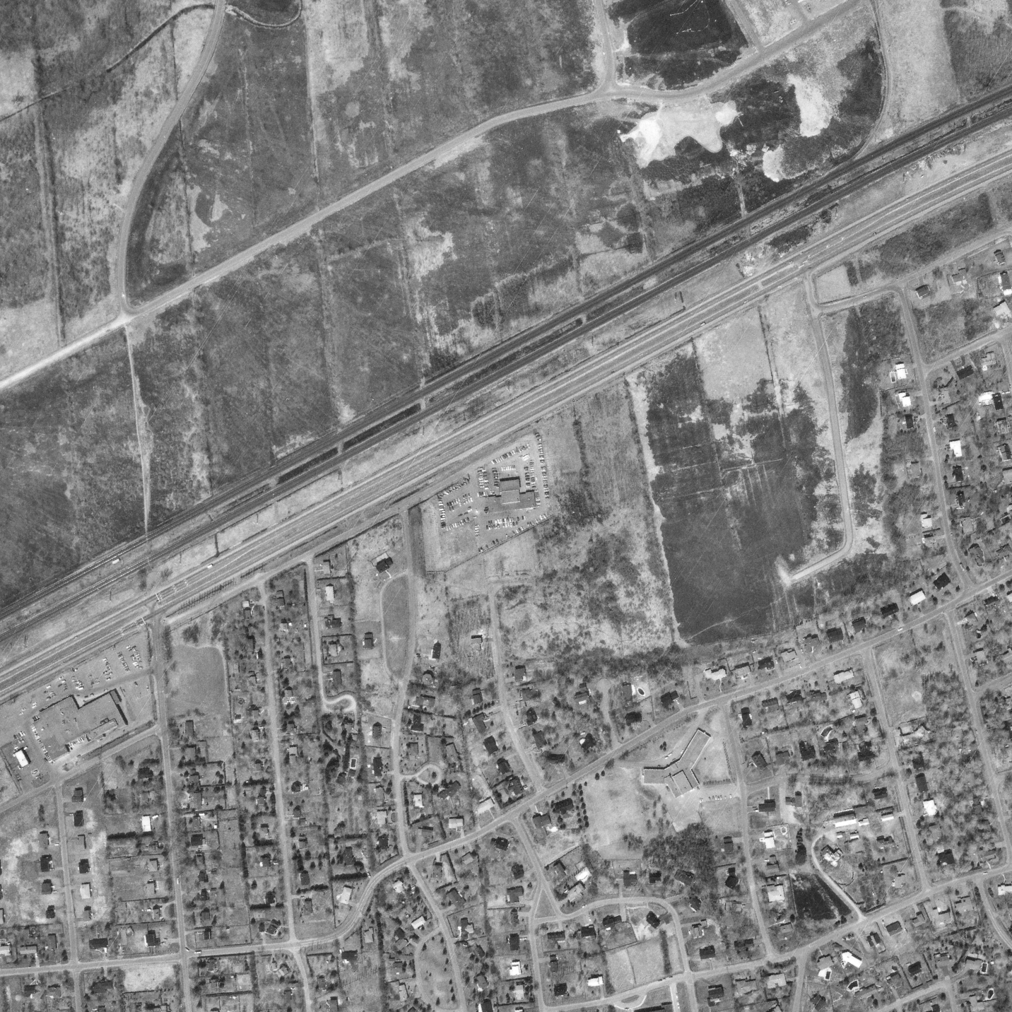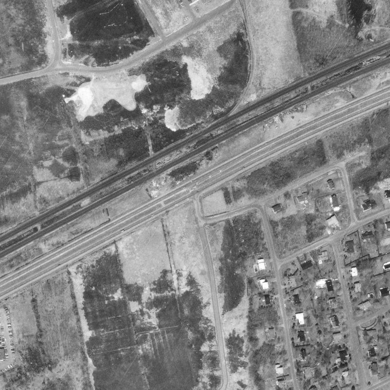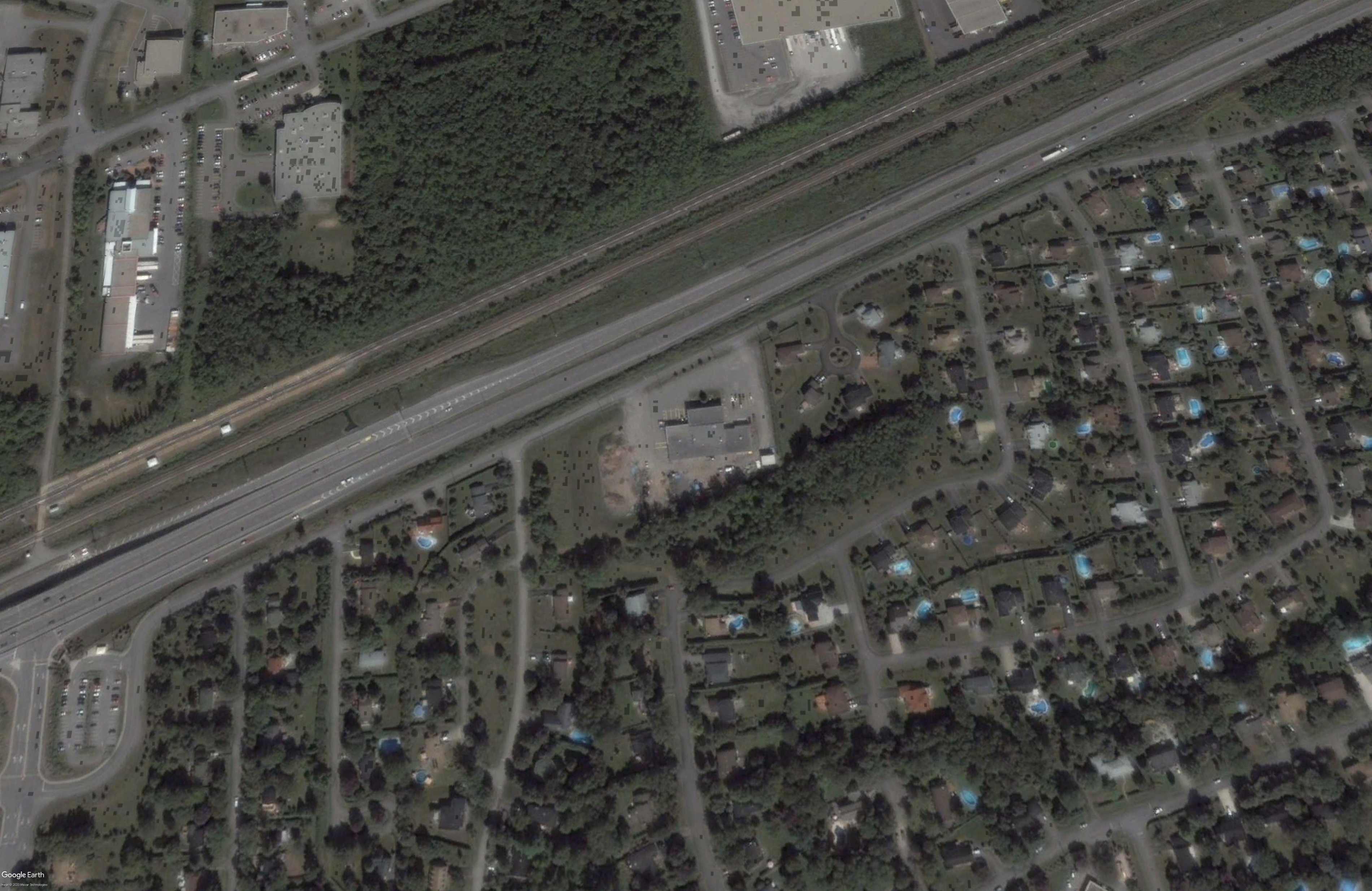 View from Gray Park towards the train tracks and the highway, photo from google-earth in 2019