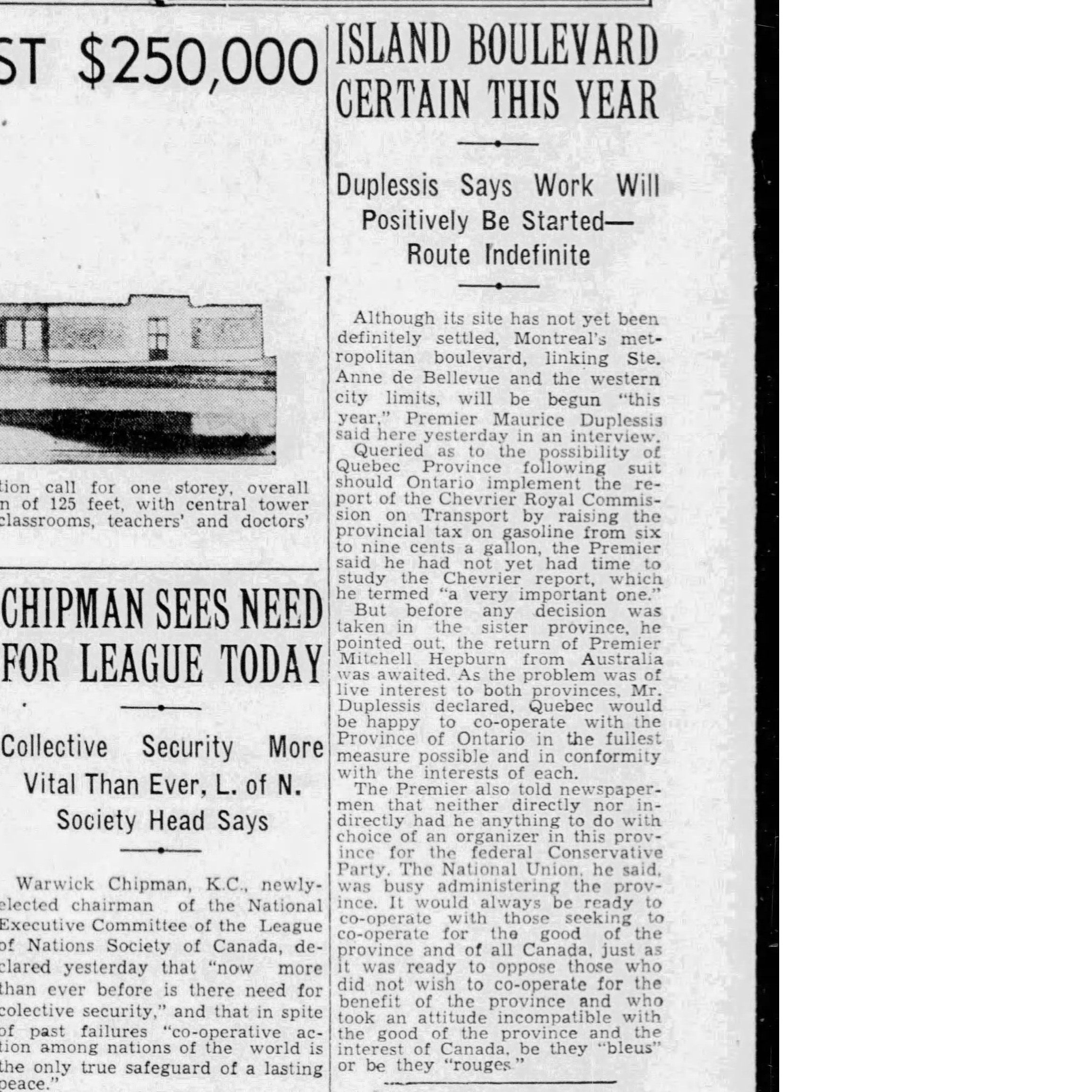 Island boulevard certain, The Gazette, Jan. 10, 1939
