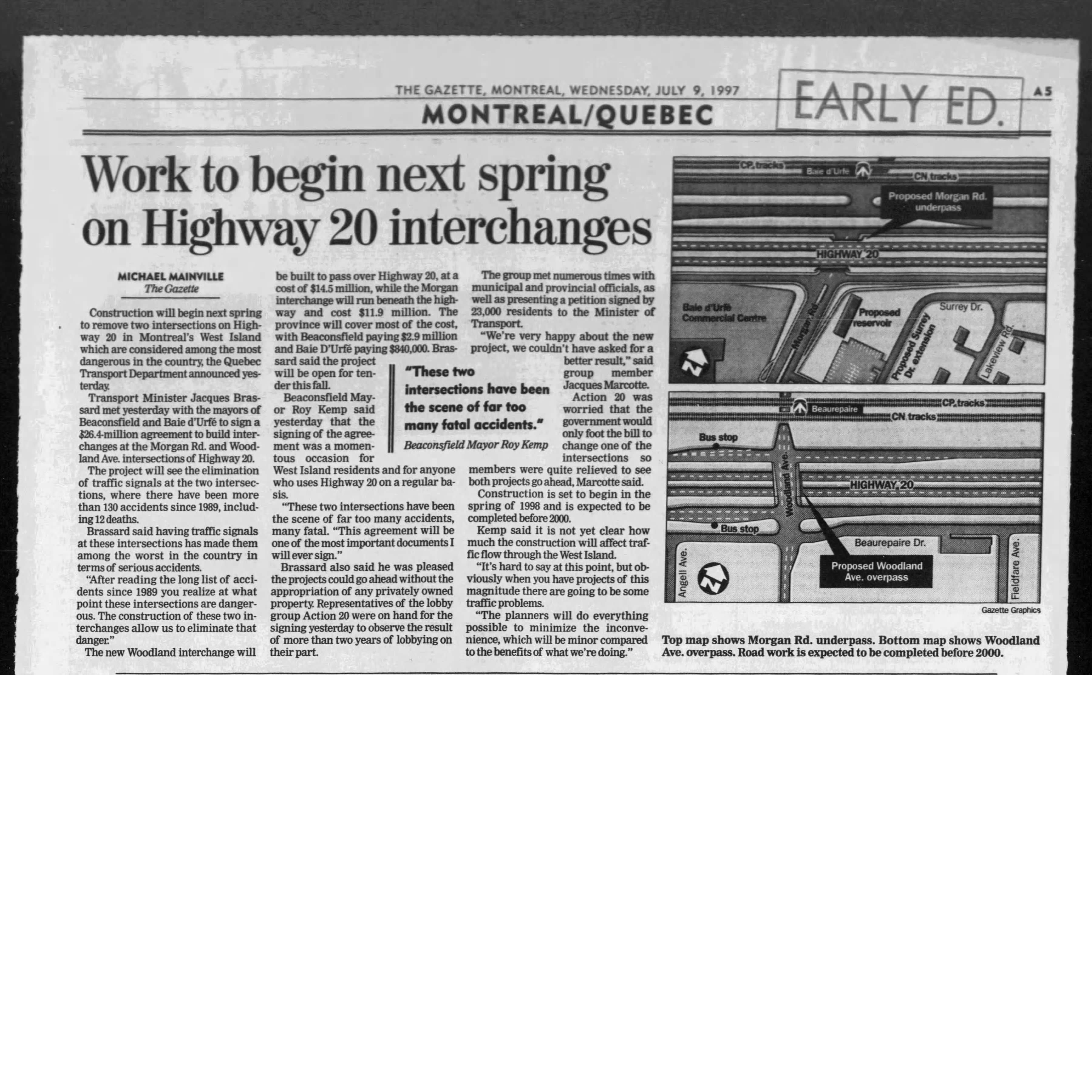 Work to begin, The Gazette, Jul. 9, 1997