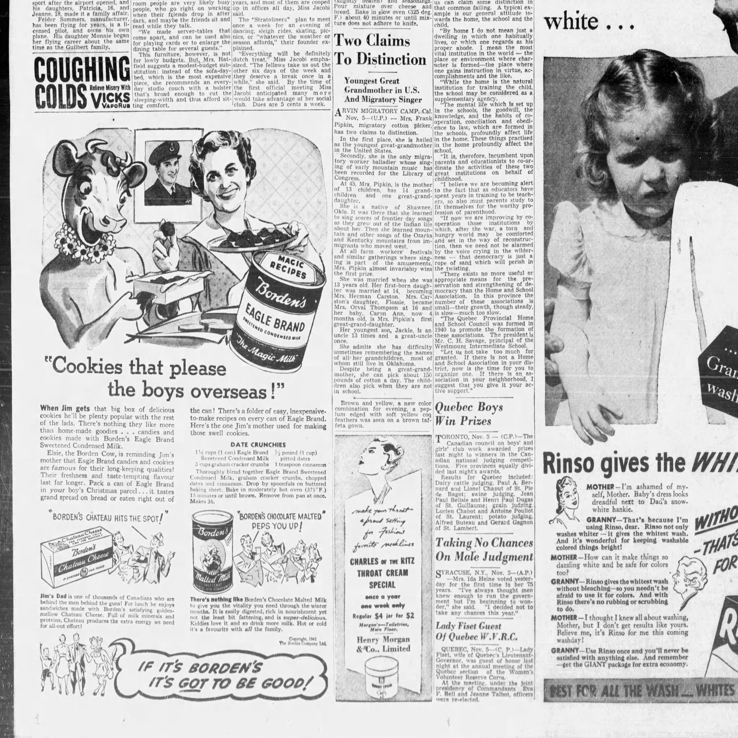 Borden advertisement with cow Elsie, source: Montreal Star, Nov 5, 1941