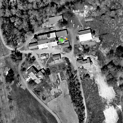 Maxwelton aerial photo May 4, 2019, the building marked in green was moved, source: google