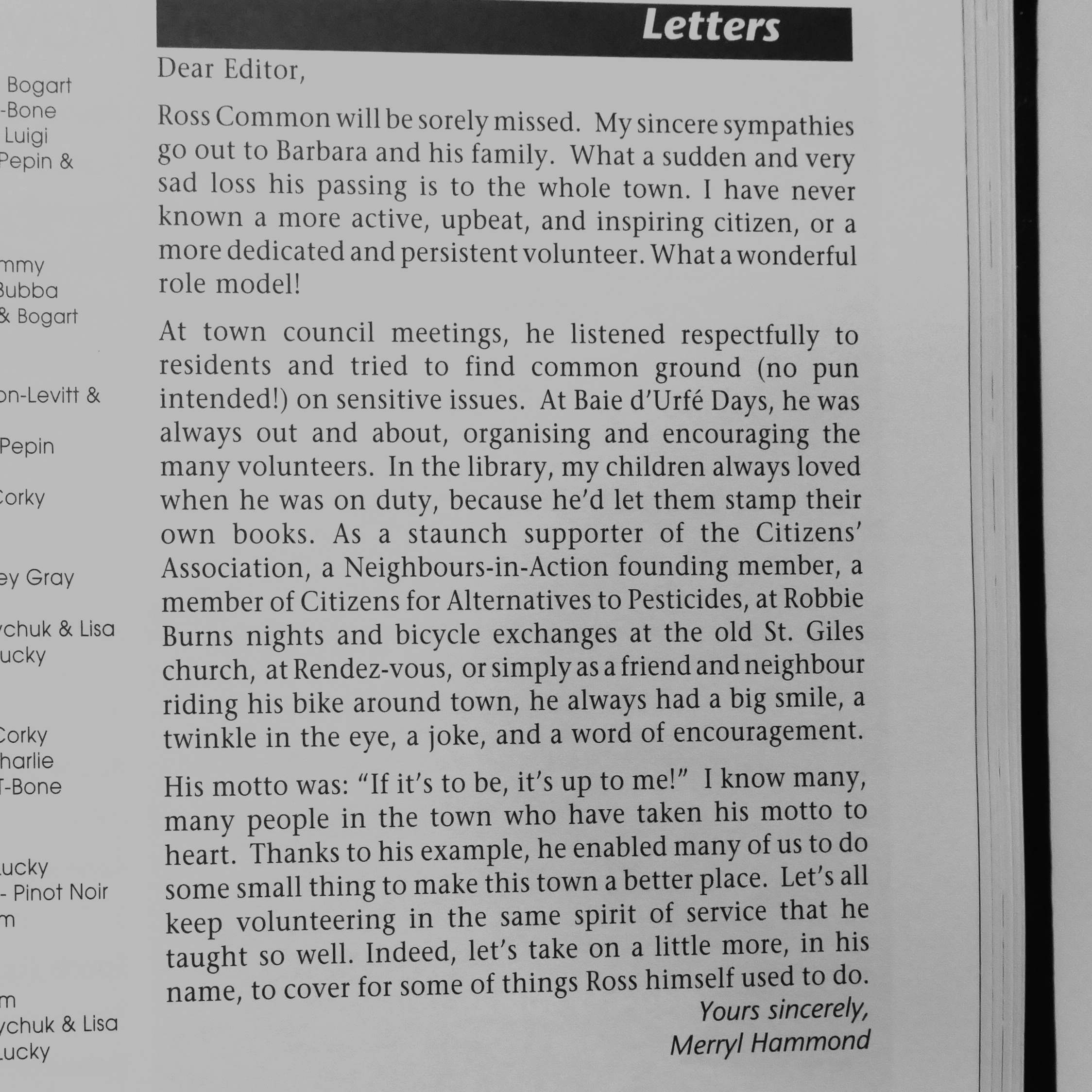Ross Common will be sorely missed, source: N&V July 2000, click picture to read