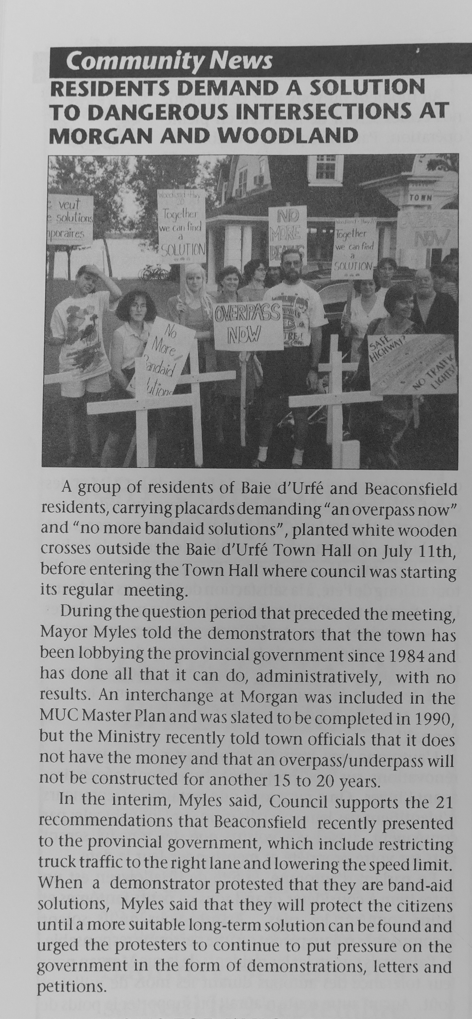 As traffic on the highway increased even more in the 1970s and 1980s, the crossings at Morgen Road in Baie-D'Urfé and at Woodland in Beaconsfield, were among the most dangerous crossings in all of Quebec. Many deadly accidents happened despite efforts to increase the safety with road markings and extra warning lights.