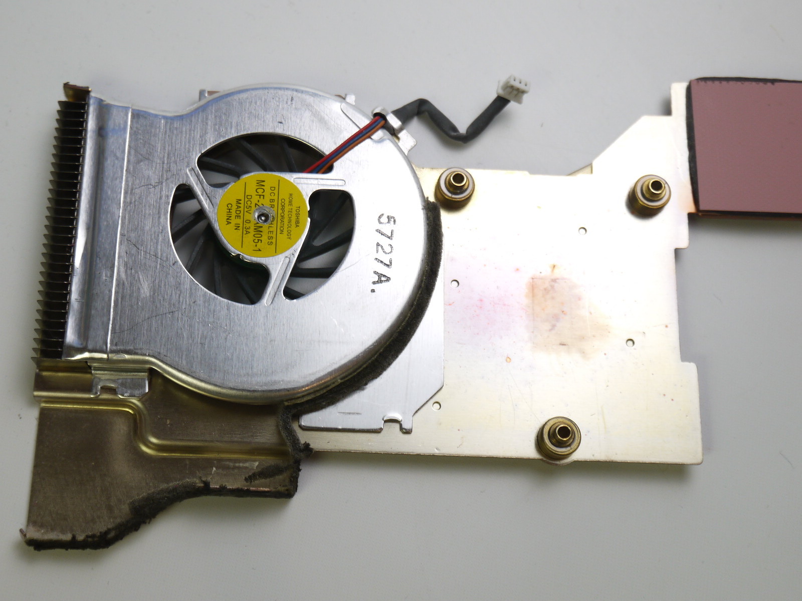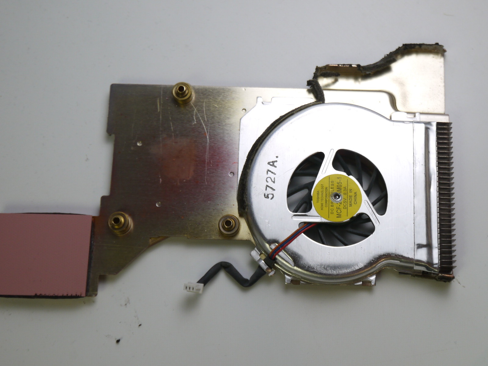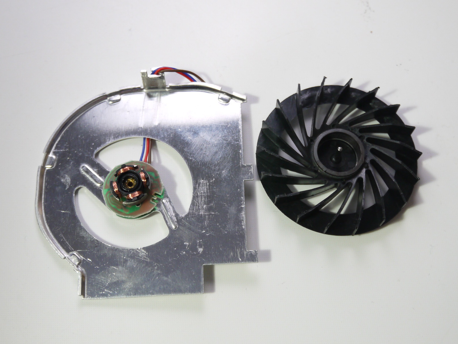 A fan similar to the t43 Toshiba fan. You can see how it works however this is a thinkpad t60 fan. The t60 fan is similar in design from the outside but the end of the bearing hole (can not be seen here) is different. The size of the the magnet inside the rotor is as well different but this picture is just to give you a basic idea as to how this fan works.