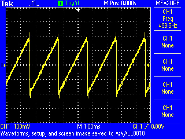At 500 Hz all the wave forms are quite good. The square overshoots quite a bit at the edges but it is still usable: